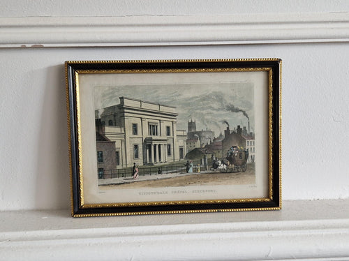 Tiviots'dale Chapel Stockport Engraved Artwork Print in black and gold colour picture frame, J H