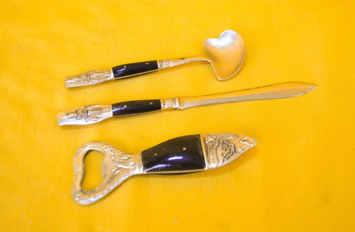 3 Piece Set - Vintage Siam / Thailand Nickel Brass Letter Opener / Can Opener & Wax Melting Spoon wi