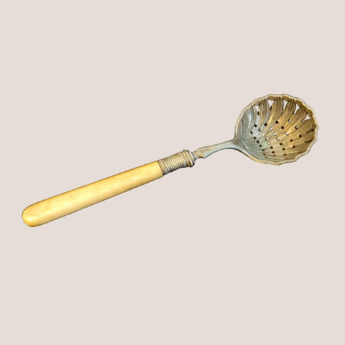 Vintage Sugar Sifter Spoon With Cream Colour Plastic Handle - English, Marked D&A, 16cm long