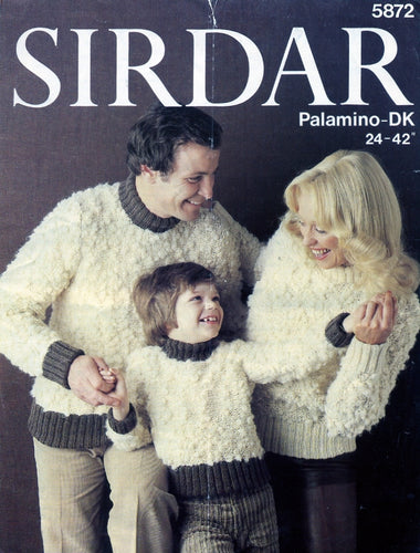 Vintage sweaters for the family knitting pattern 24 to 42" chest Sirdar 5872