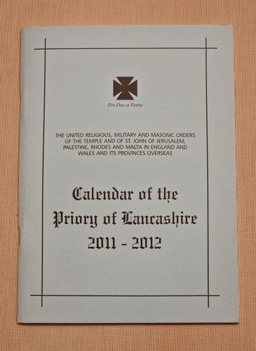 Calendar Of The Priory Of Lancashire 2011 - 2012 , Masonic Information Guide