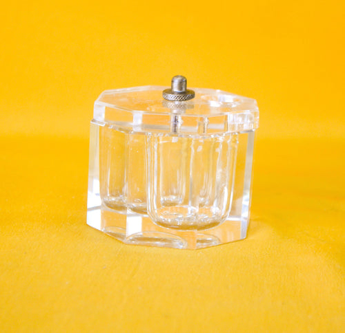 Clear Glass Octagon Scarf Pin Pot, Vintage unusual item