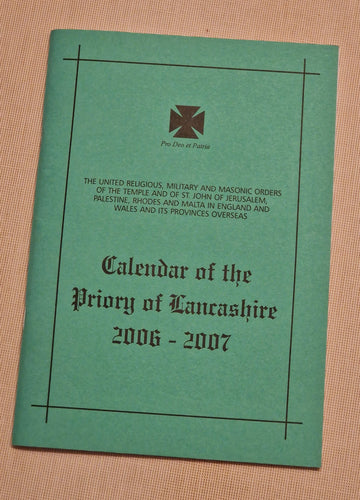 Calendar Of The Priory Of Lancashire 2006 - 2007 , Masonic Information Guide