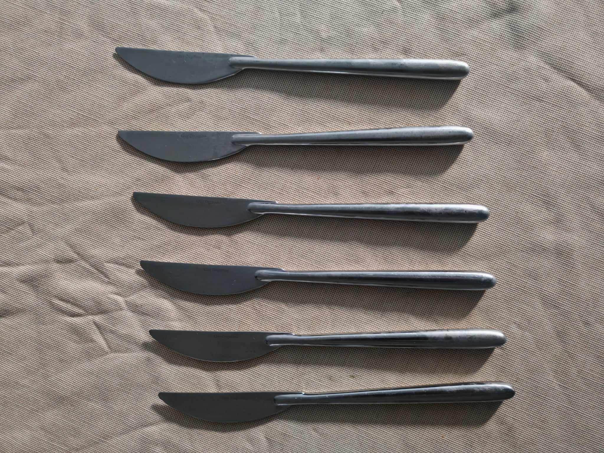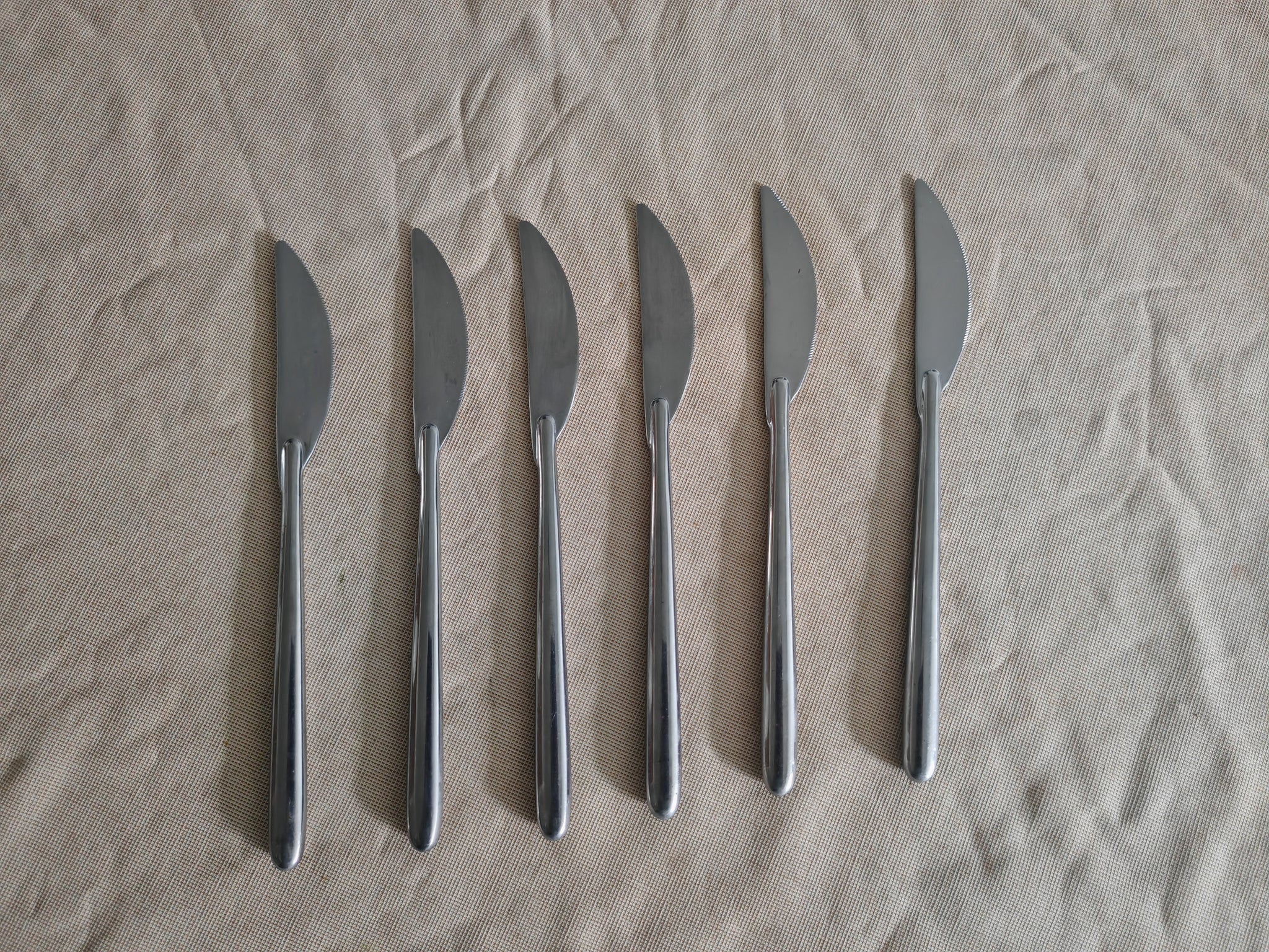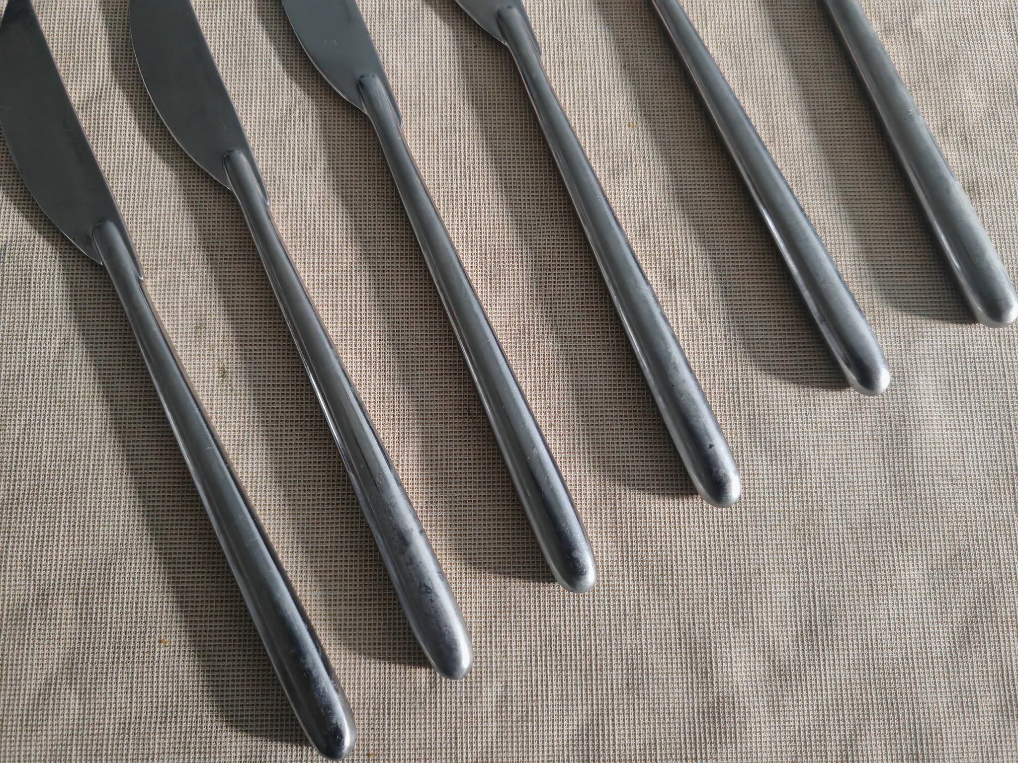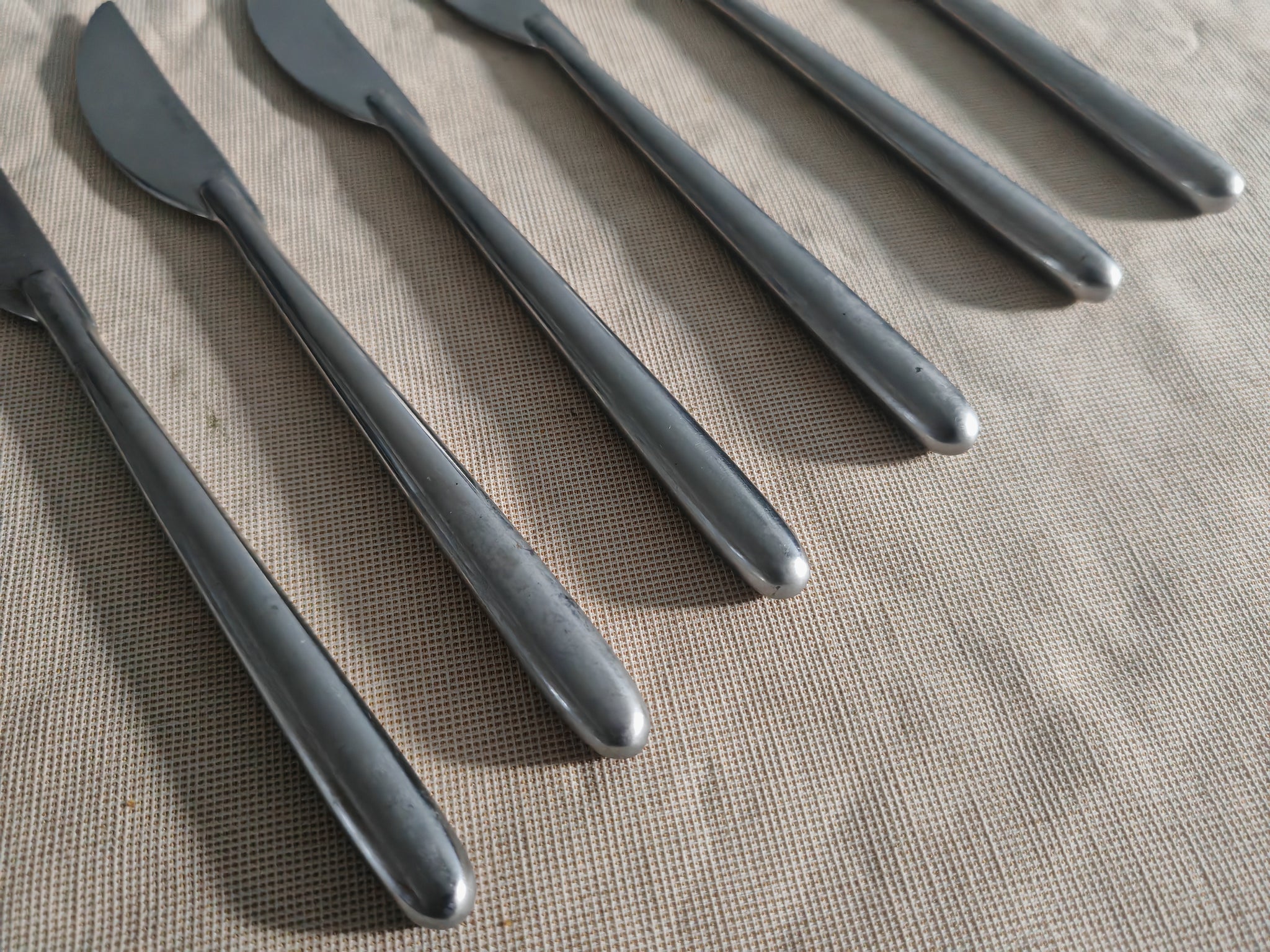 Elevate your dining experience with this elegant set of 6 Guy Degrenne stainless steel dinner knives. Renowned for quality and timeless design, Guy Degrenne cutlery is a staple in fine European dining. These knives feature a sleek, minimalist form with a comfortable grip and gently curved blade—perfect for both everyday use and formal table settings.