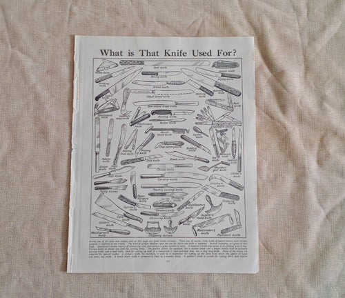 Vintage Original Bookplate Print Antique Knife Illustration Chart – Old Reference Plate – Collectible Wall Art – Used