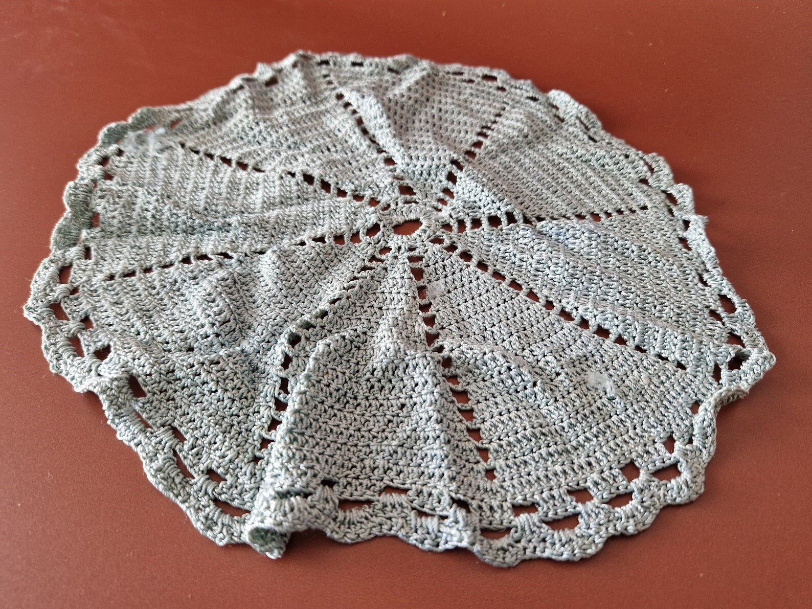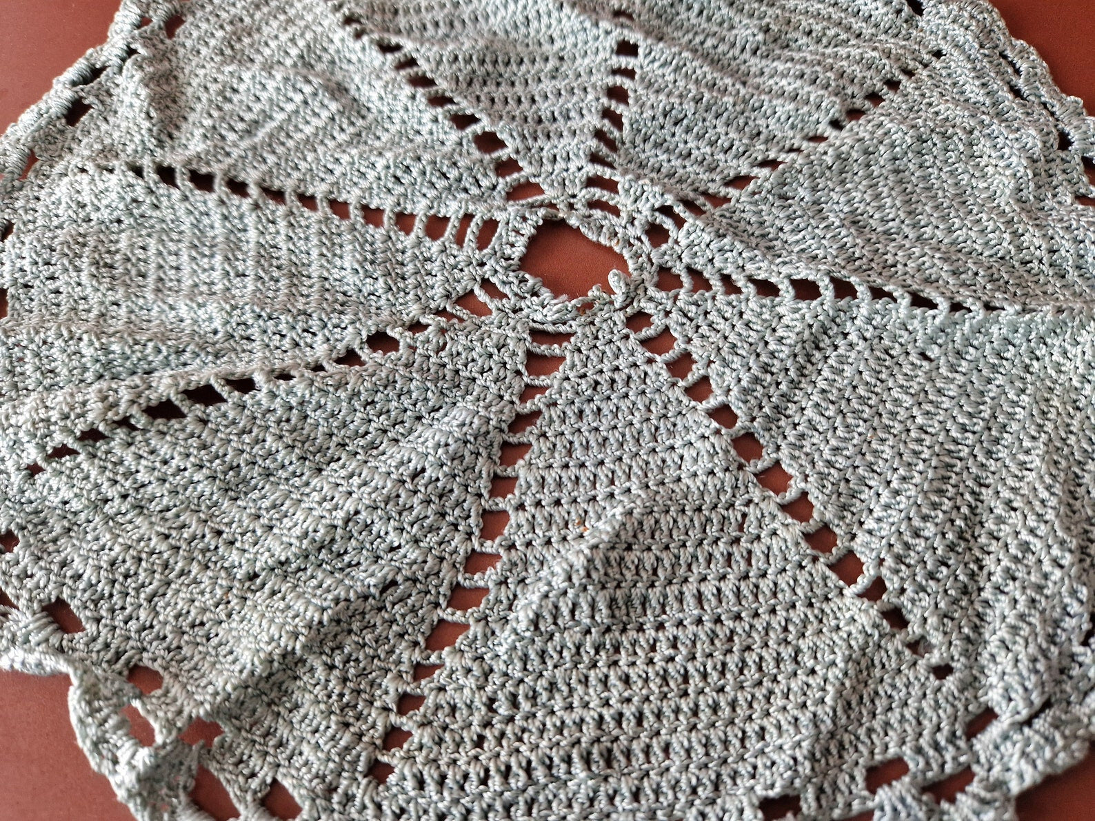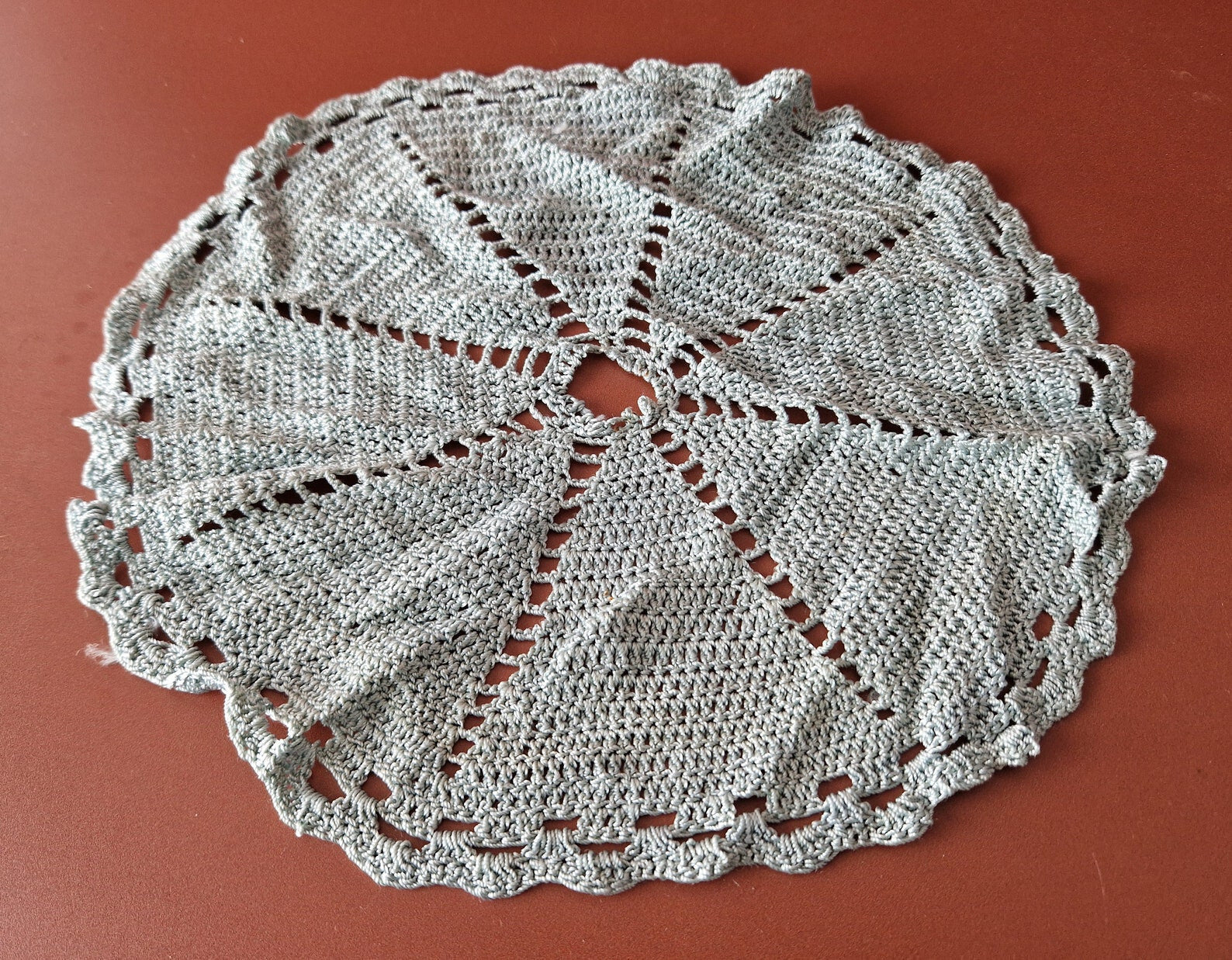 2 x Rare Crochet Doily Ornamental Round Table Place Mats , Blue Colour  Retro