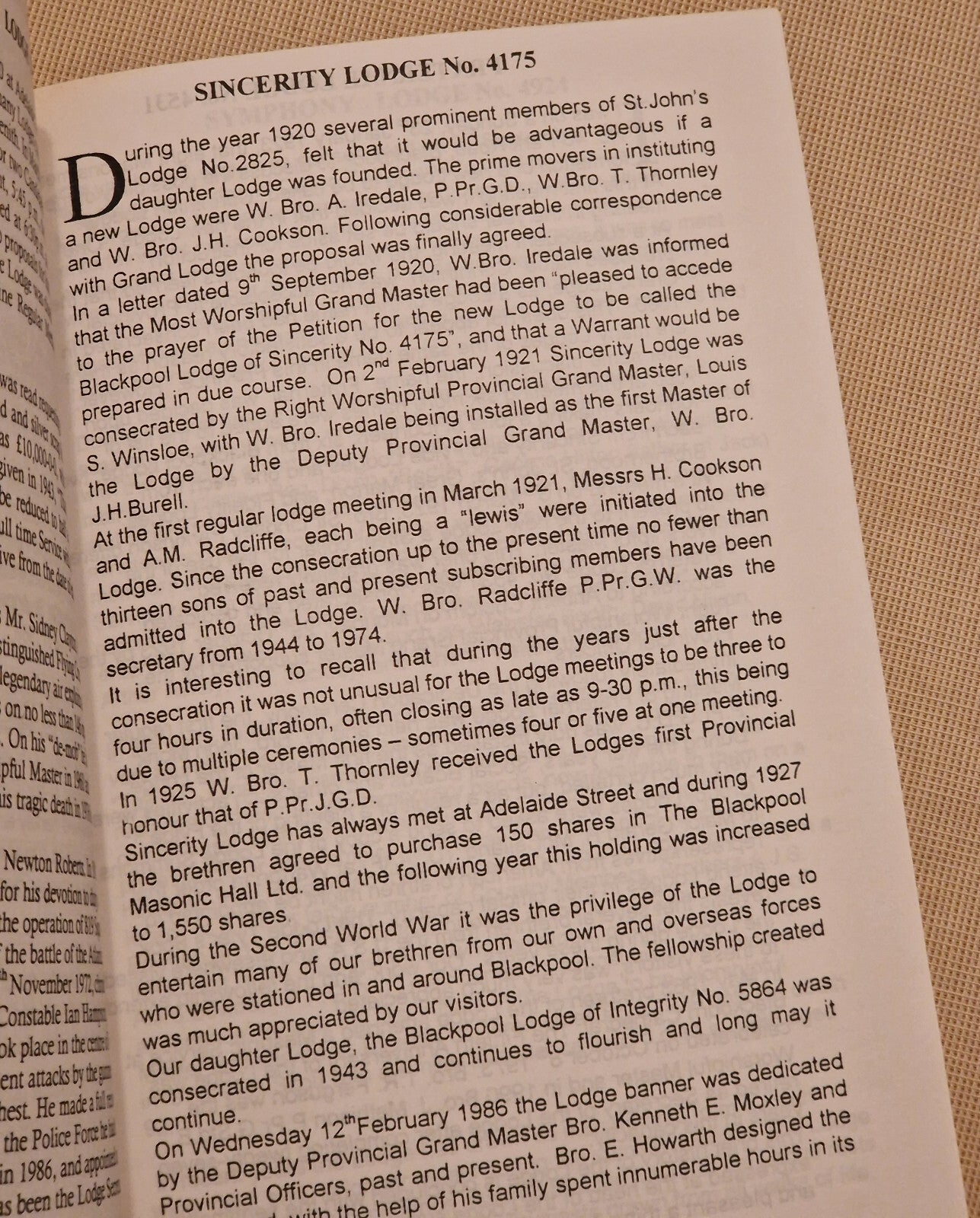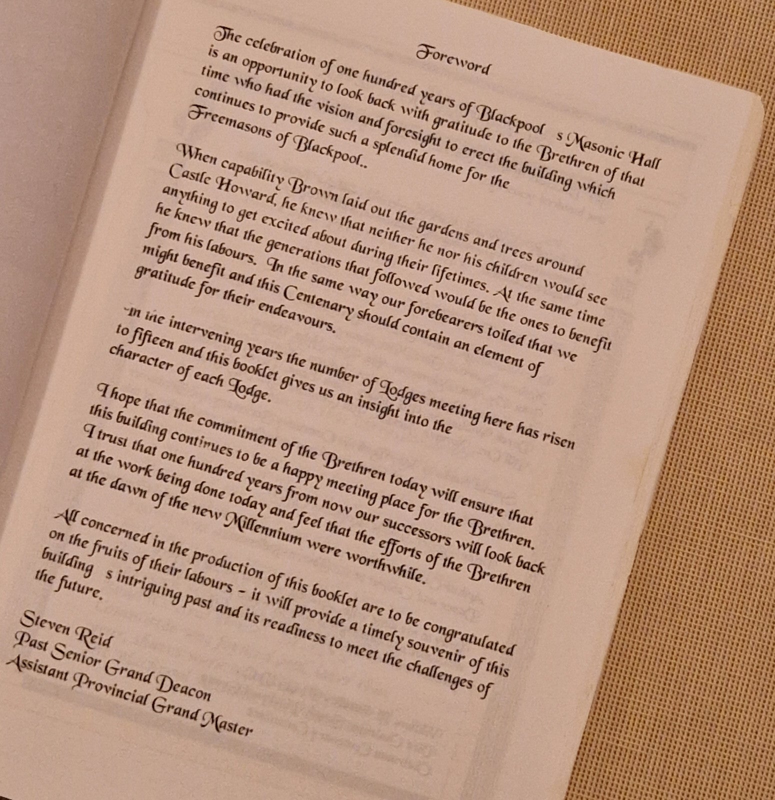 Blackpool Masonic Hall 1899 - 1999 , A Souvenir Information Guide Booklet