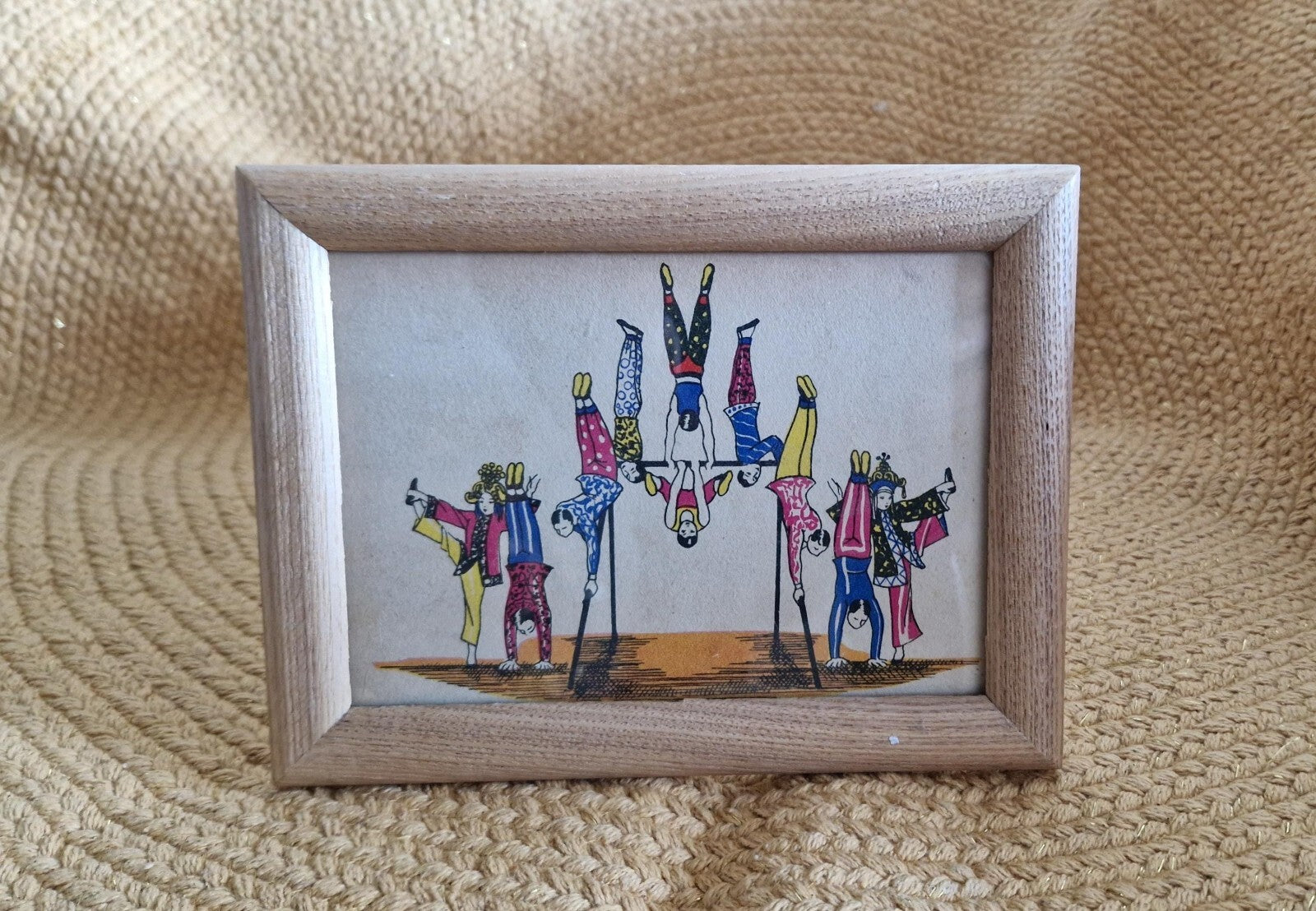 Book Plate Print Picture Frame Carnival Circus Acrobat Performers wooden frame