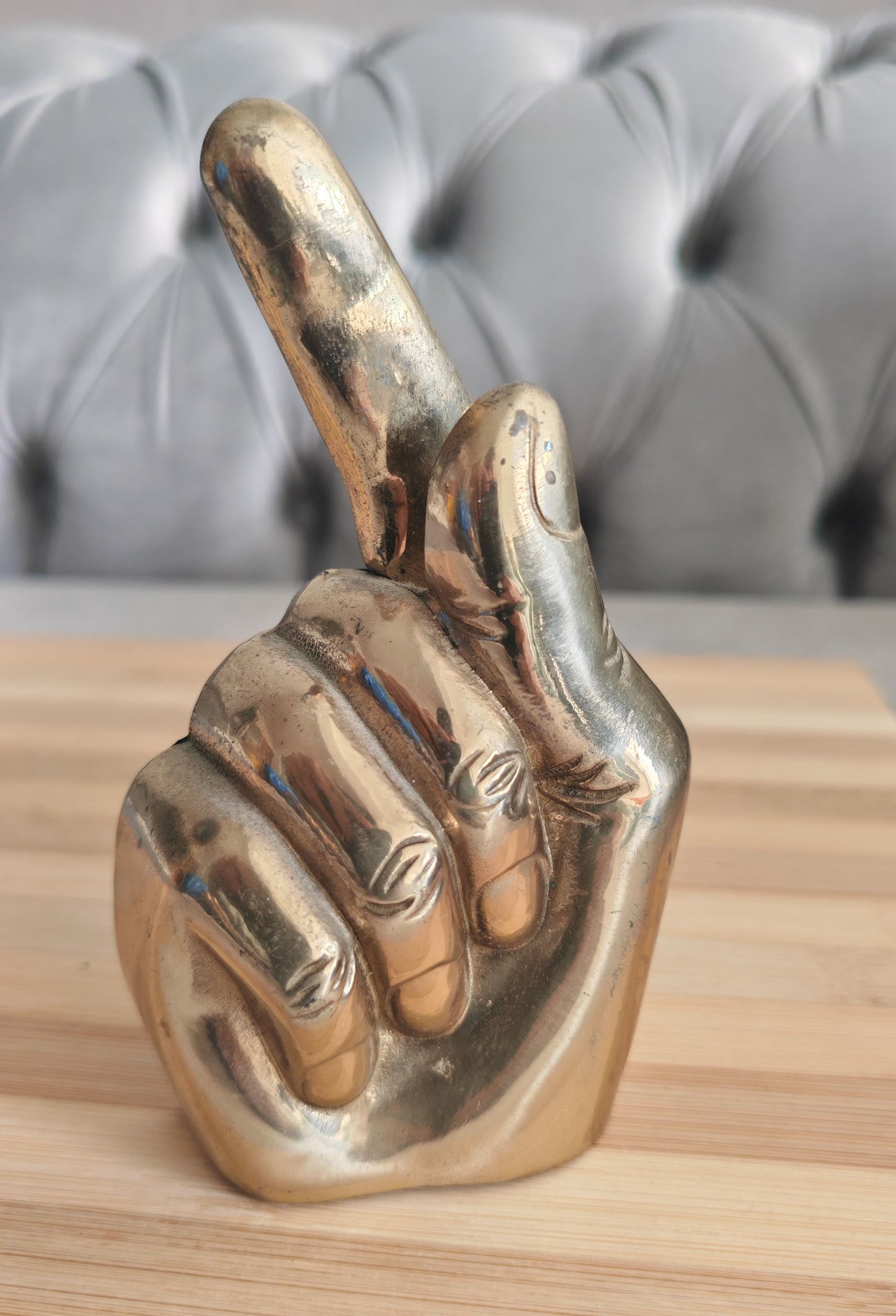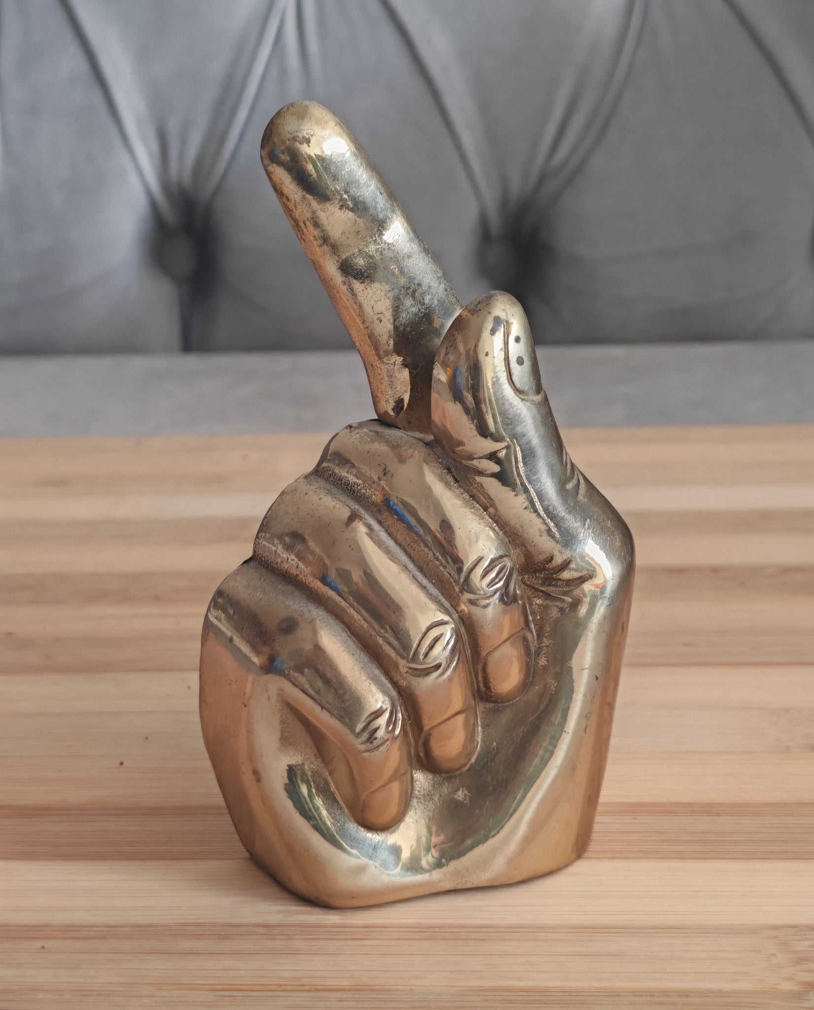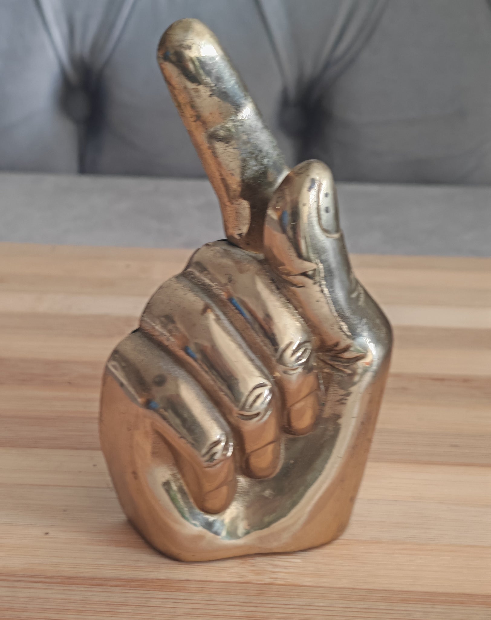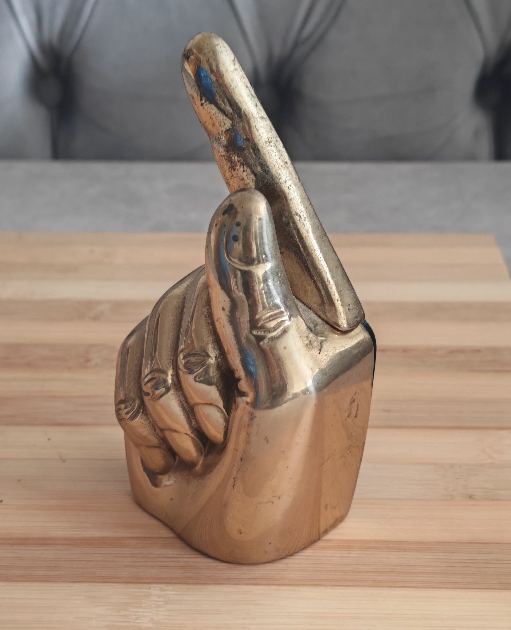 Elevate your dining experience with this charming Brass Hand Napkin Holder. This vintage piece, designed in the shape of a hand giving a peace sign, combines functionality with a decorative flair, making it an excellent addition to any table setting. Its golden brass composition adds a touch of elegance, while its compact size ensures it fits seamlessly on any dining or side table.