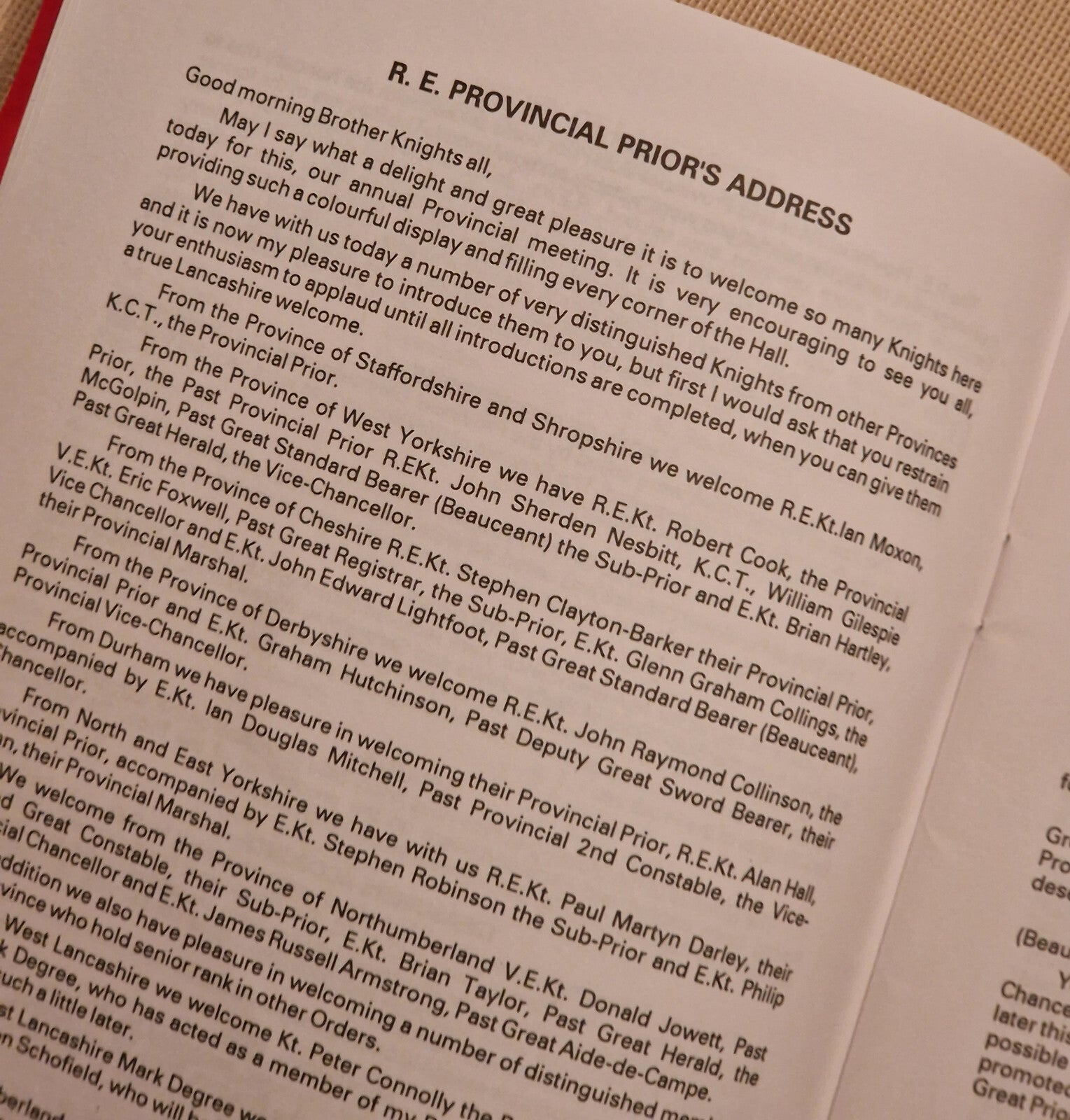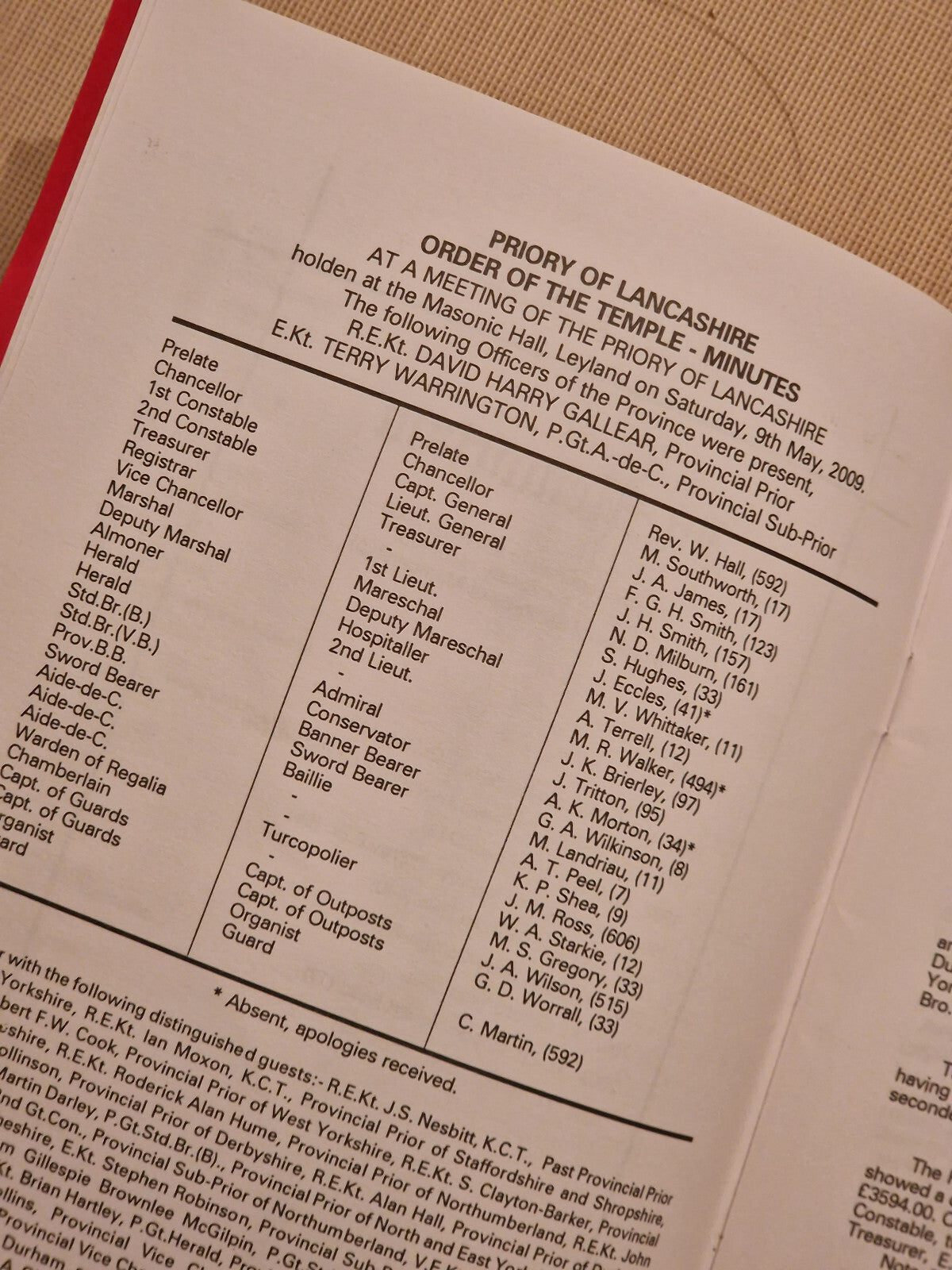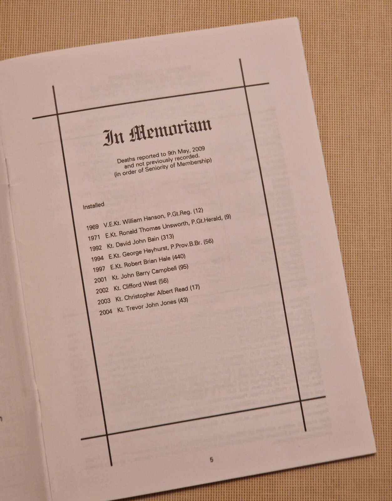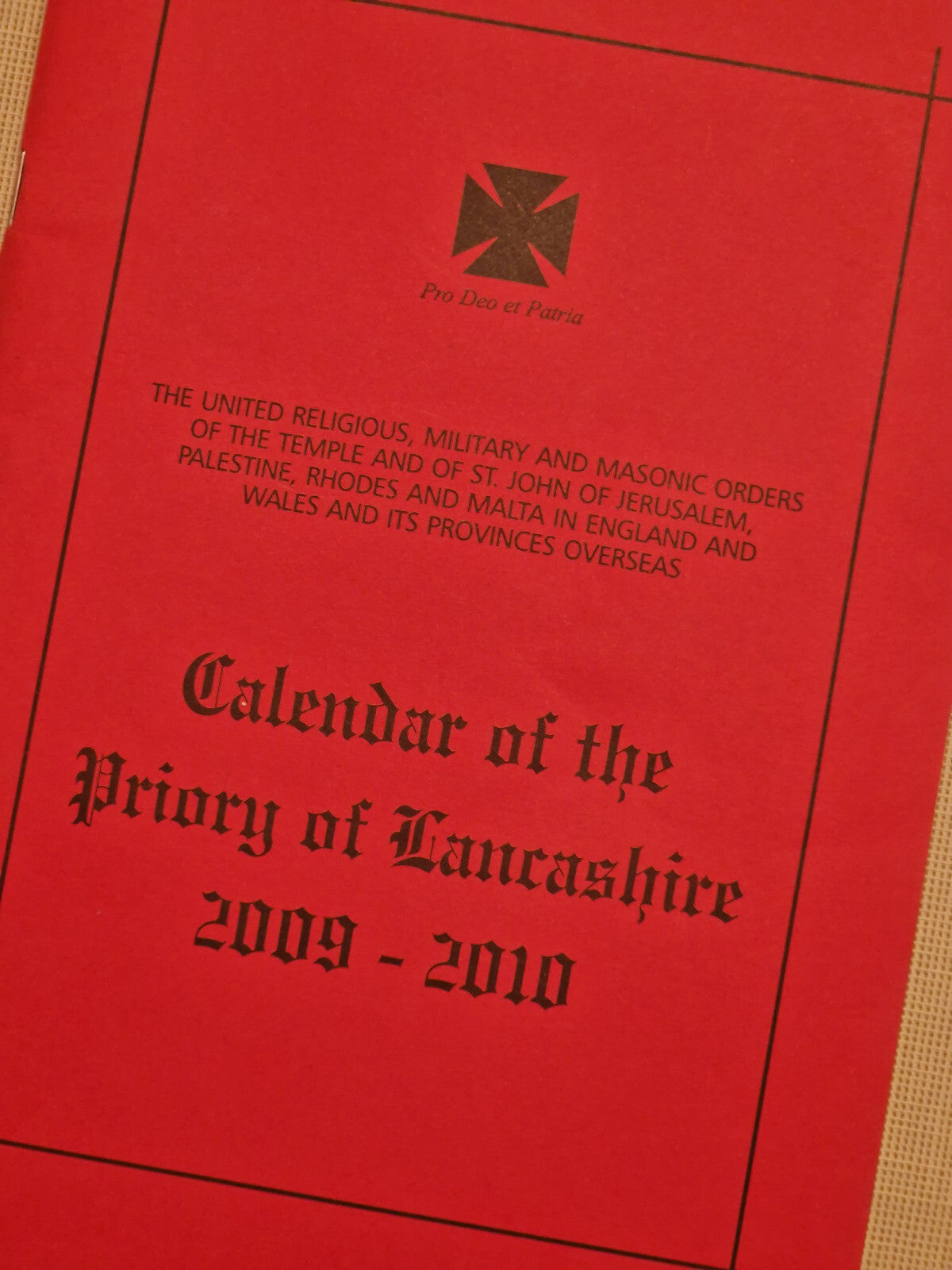 Calendar Of The Priory Of Lancashire 2009 - 2010 , Masonic Information Guide Booklet