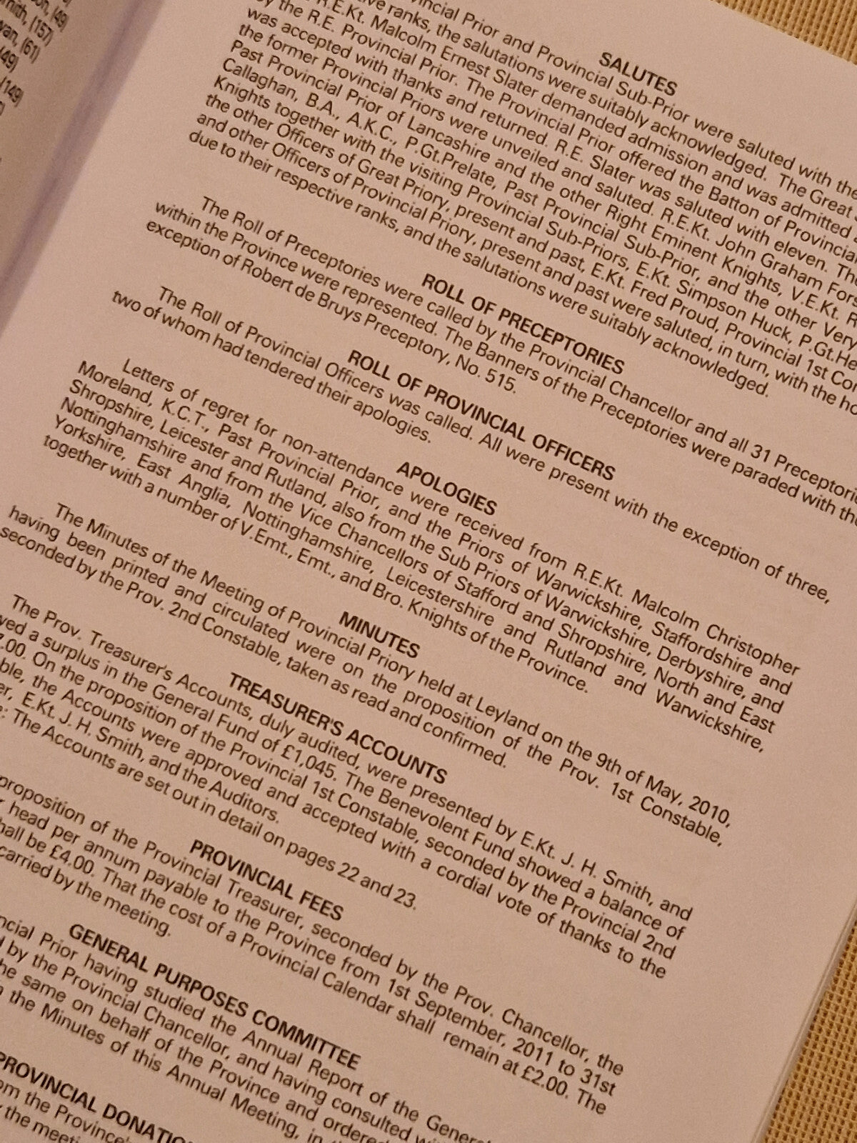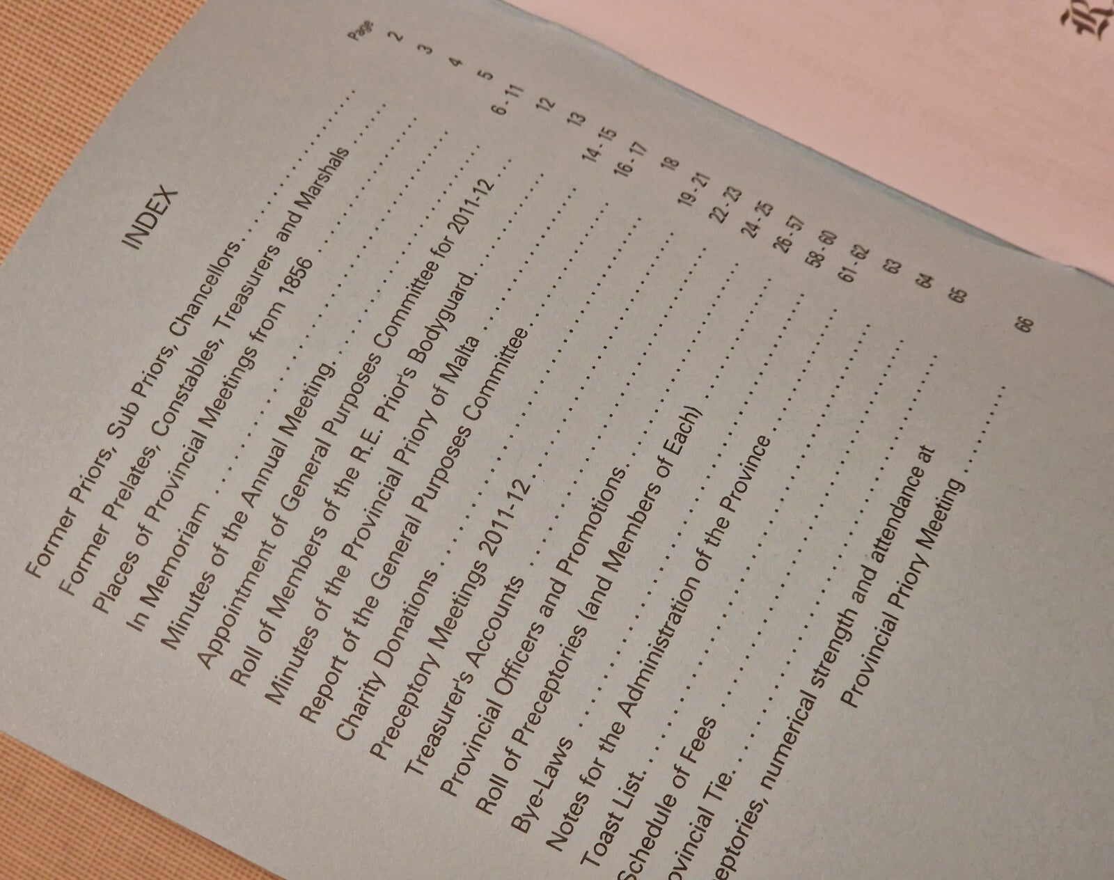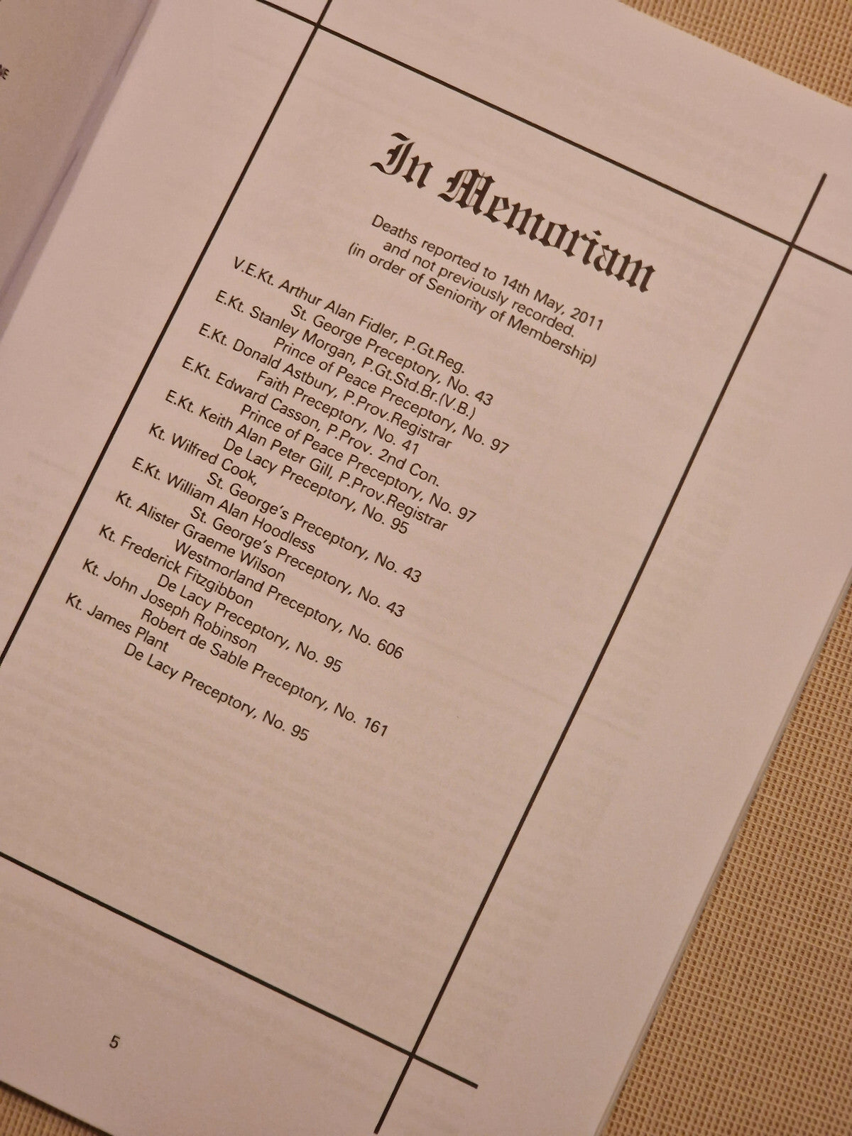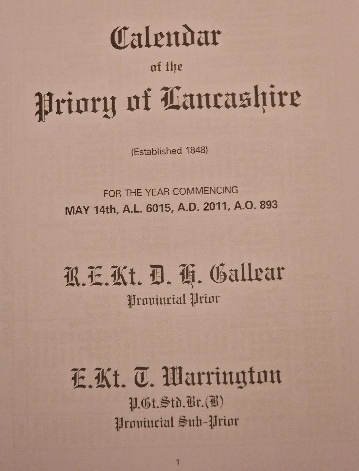 Calendar Of The Priory Of Lancashire 2011 - 2012 , Masonic Information Guide Booklet