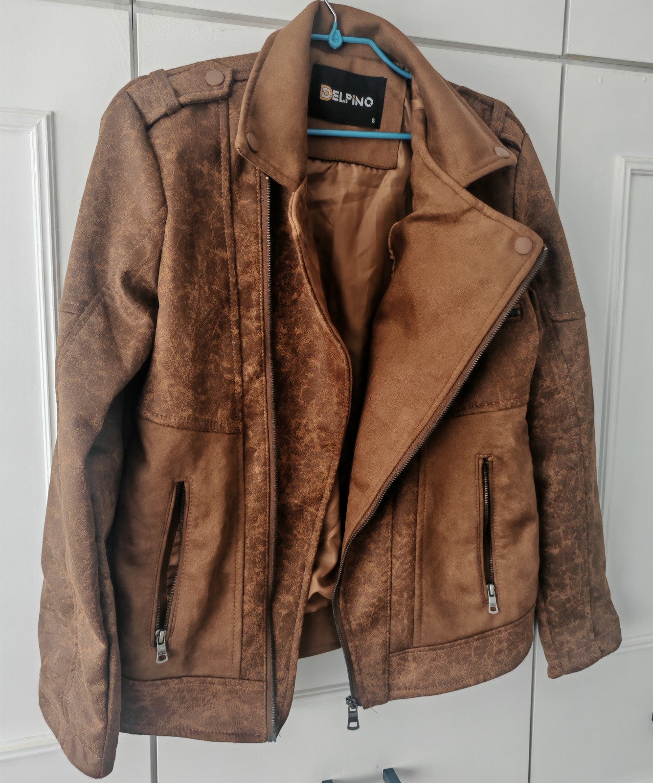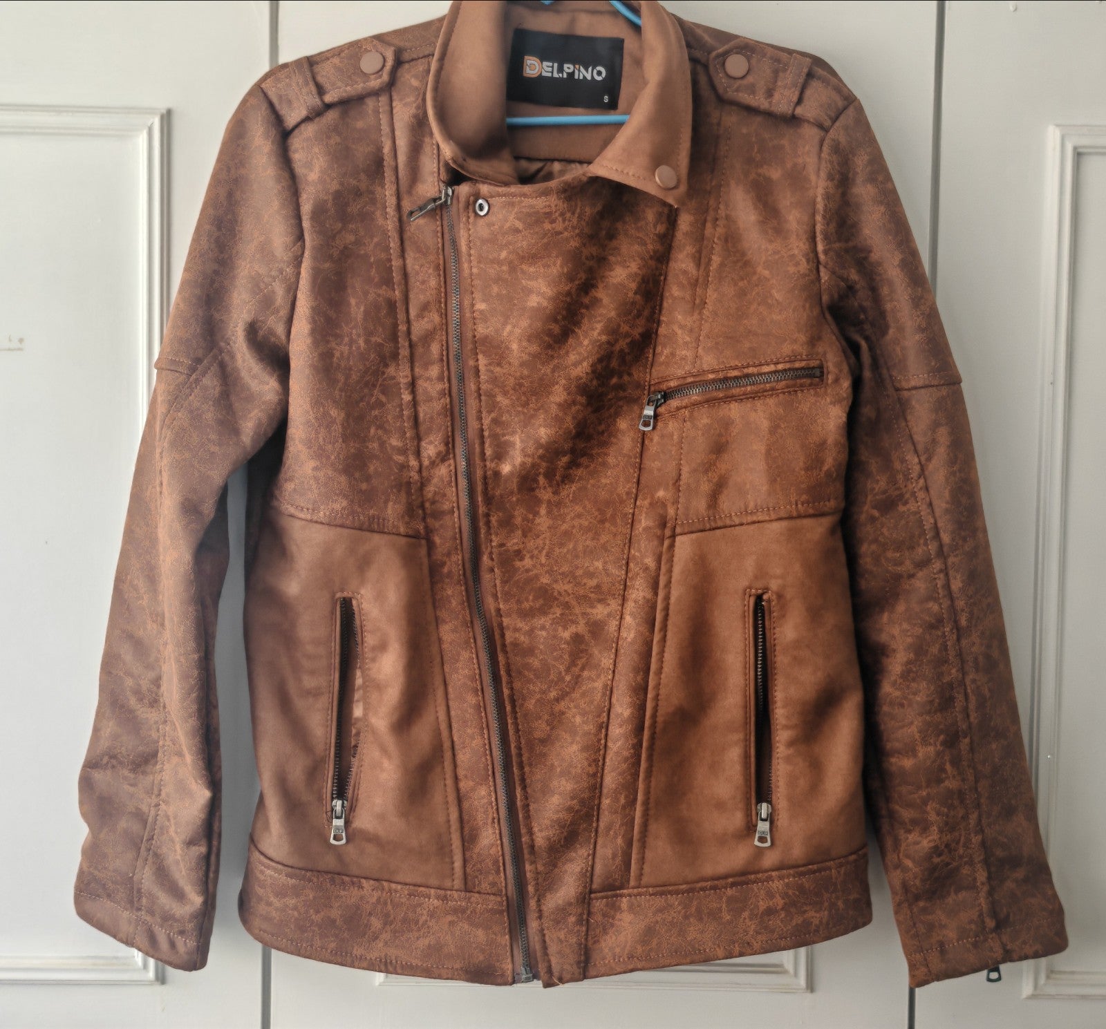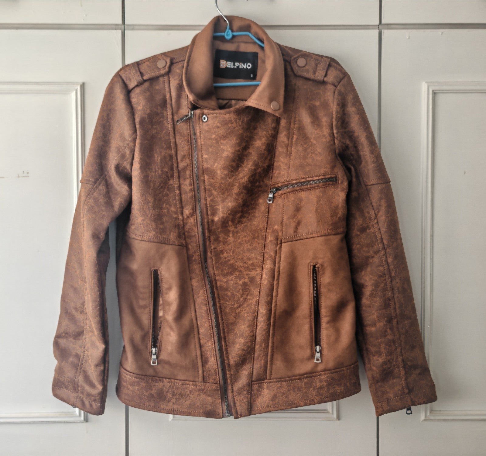 Delpino Men’s Brown Faux Leather Biker Jacket – Size S – Made in Turkey