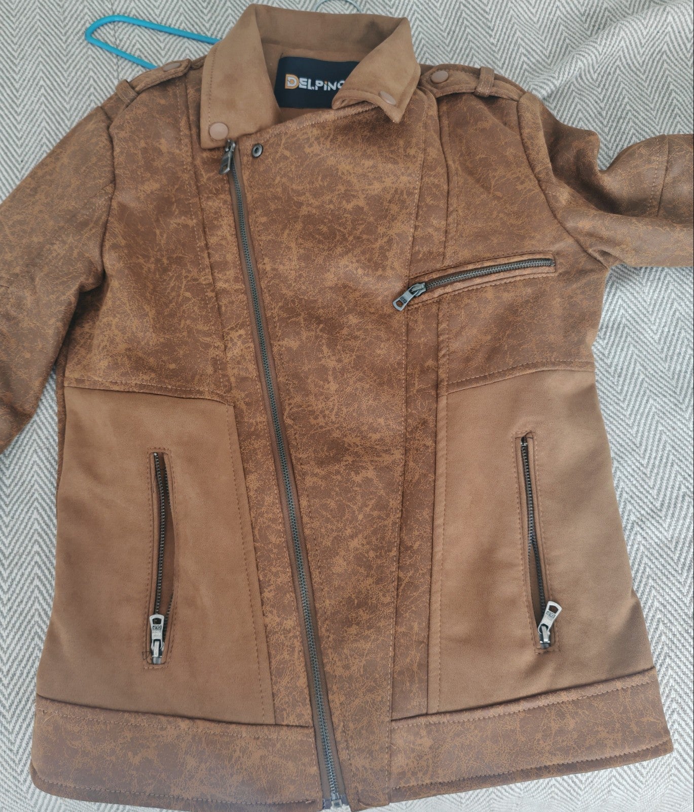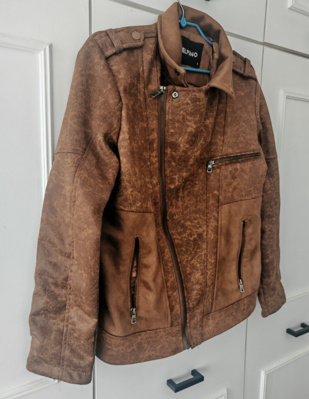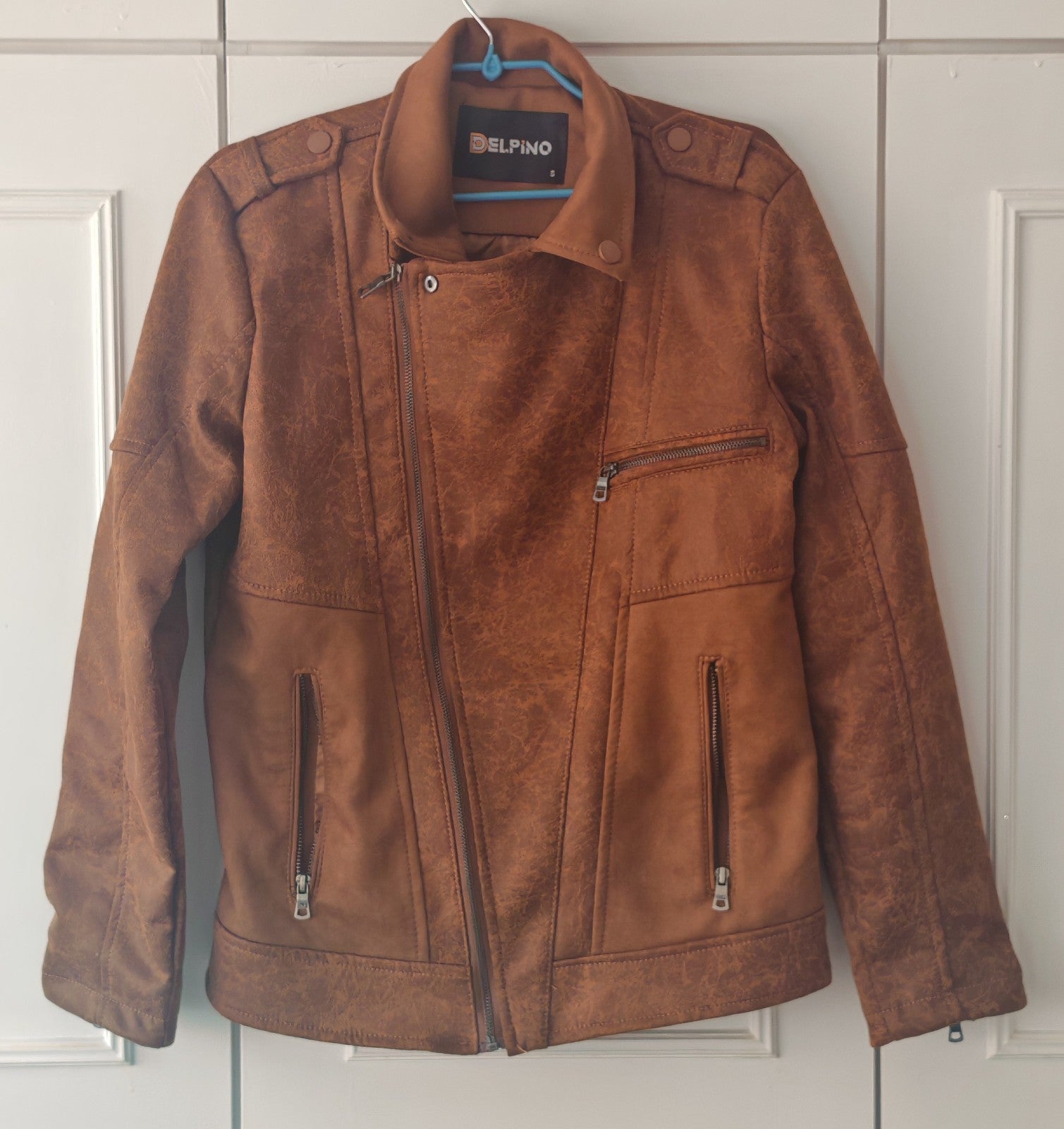 Delpino Men’s Brown Faux Leather Biker Jacket – Size S – Made in Turkey