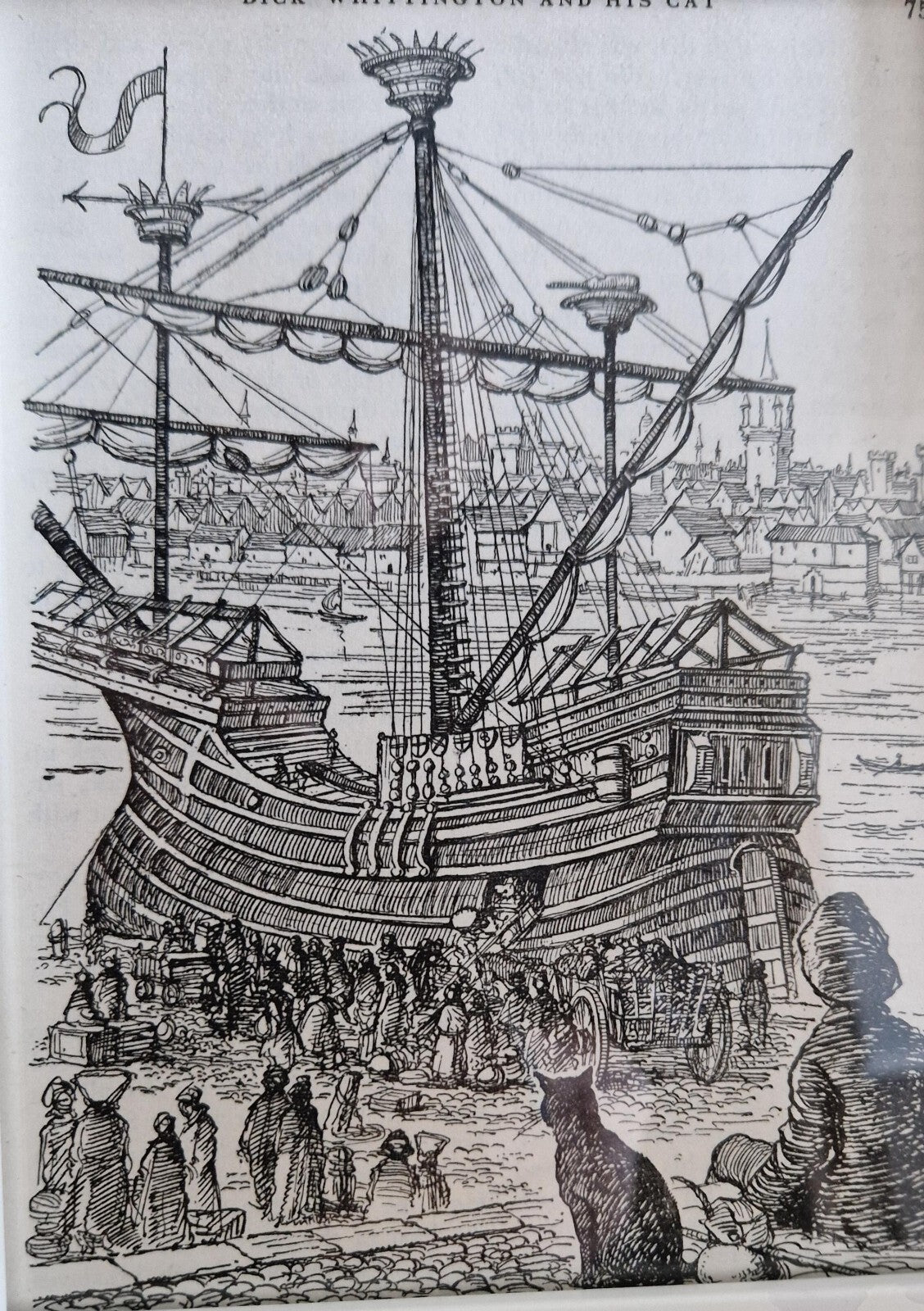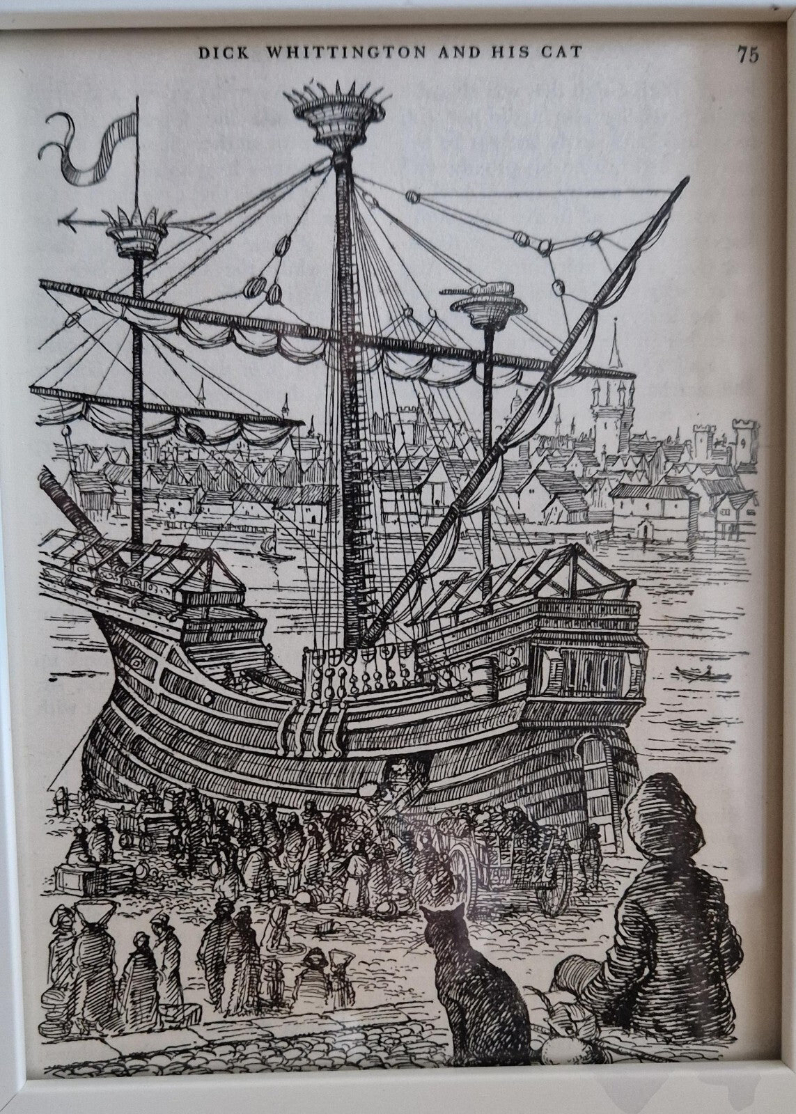 Subject: Dick Whittington And His Cat By The Thames Quayside Dick and His Cat Watch The Ship Loaded For Indies