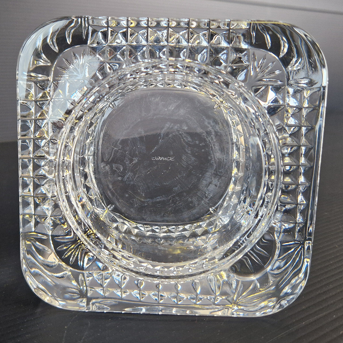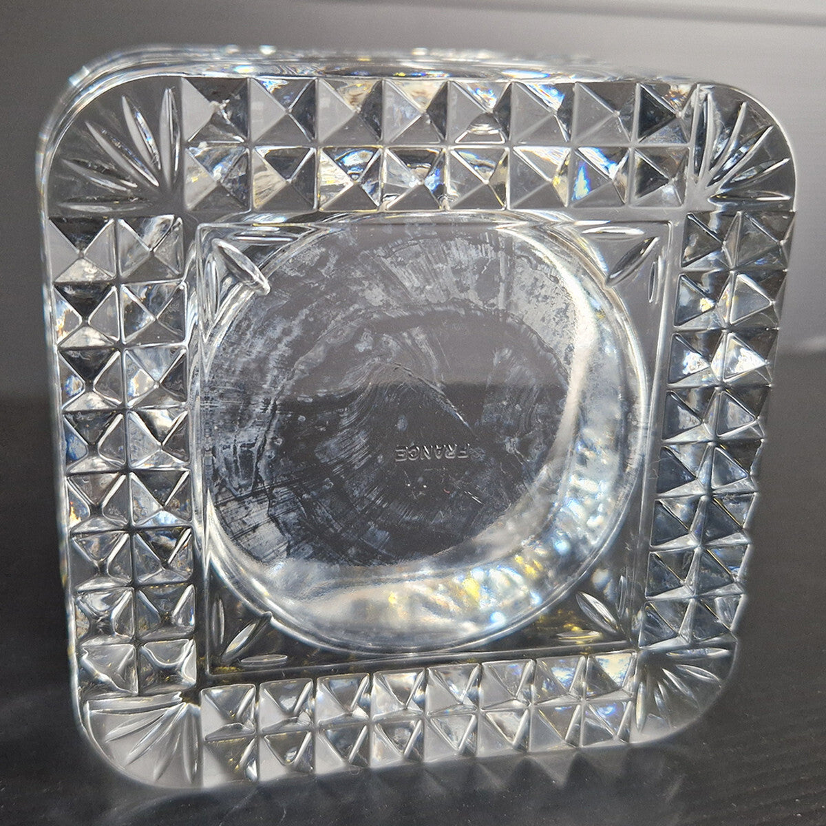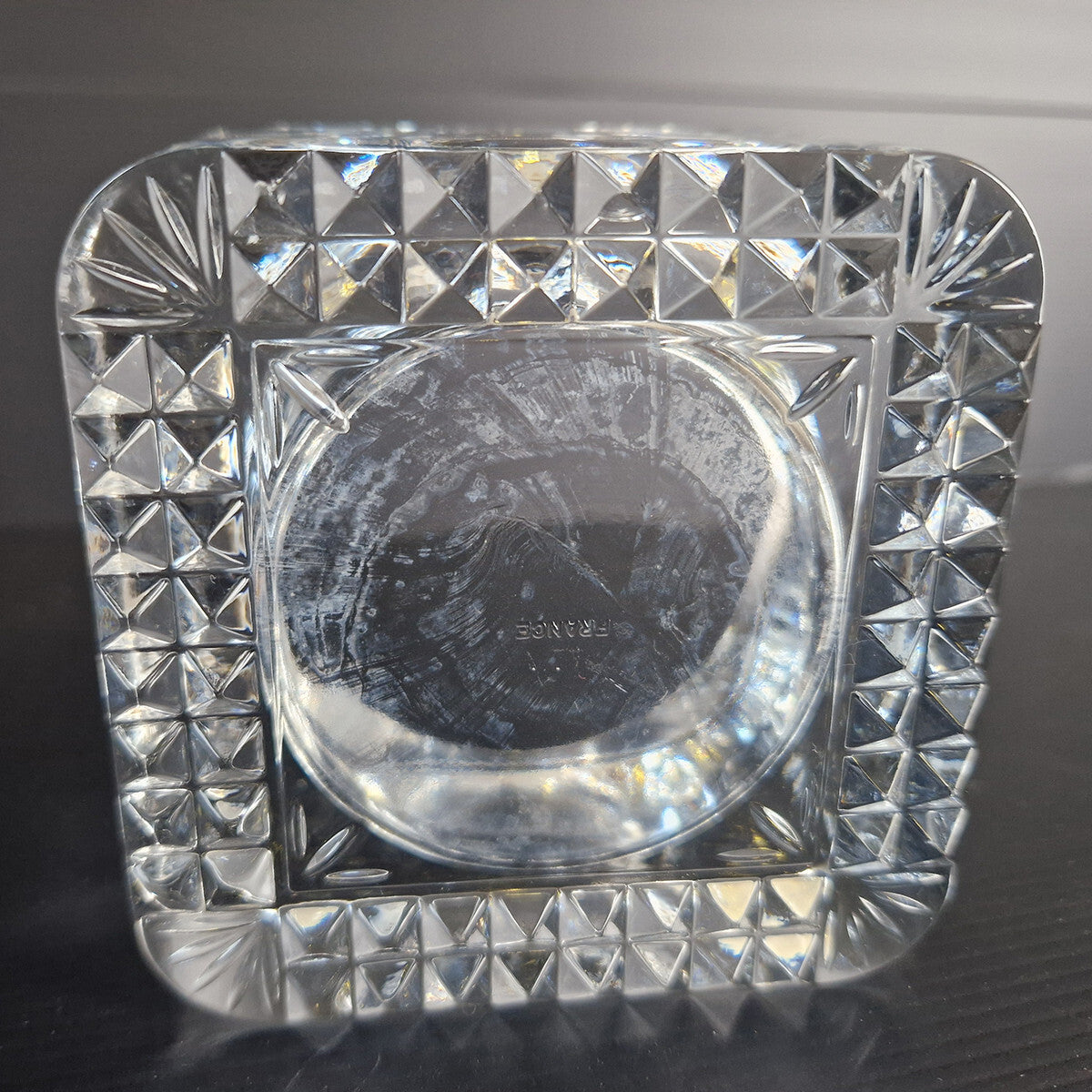 A gorgeous lead crystal square glass trinket dish made in France.  Etched France on the base. UNMARKED but have seen identical item with Cristal D'Arques's label, which is no longer present.