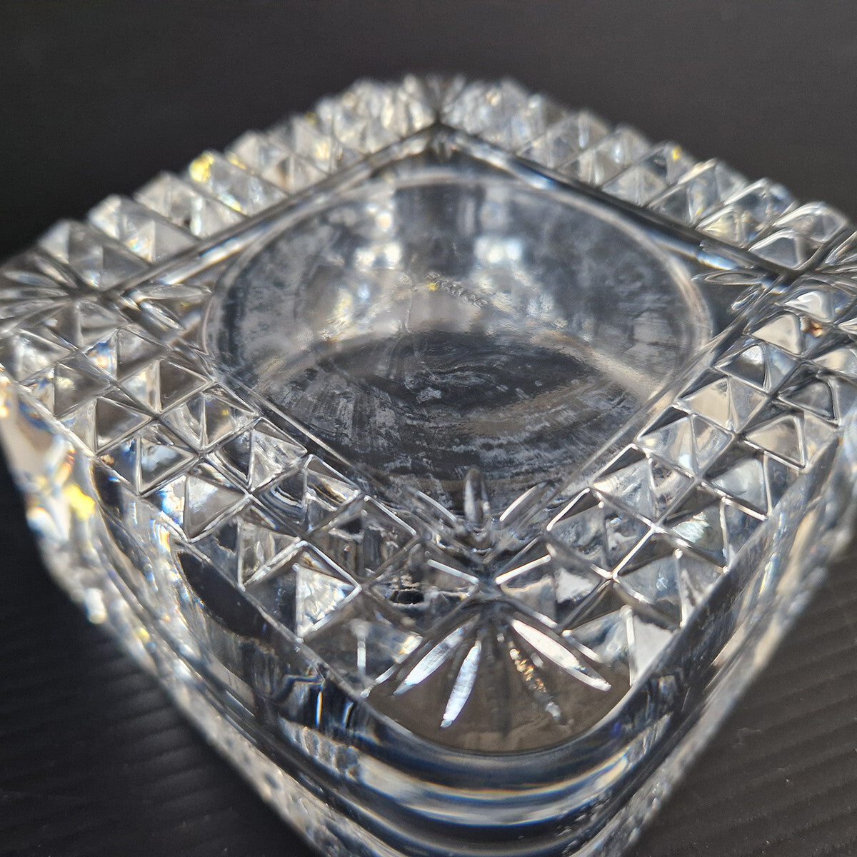 French Crystal Square Trinket Dish - Cristal D'Arques Heavy Ring Holder. UNMARKED.