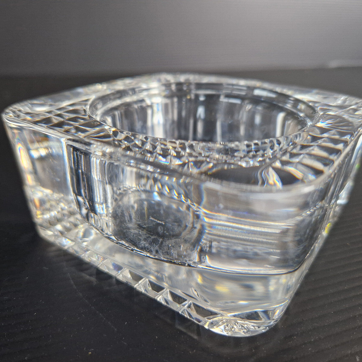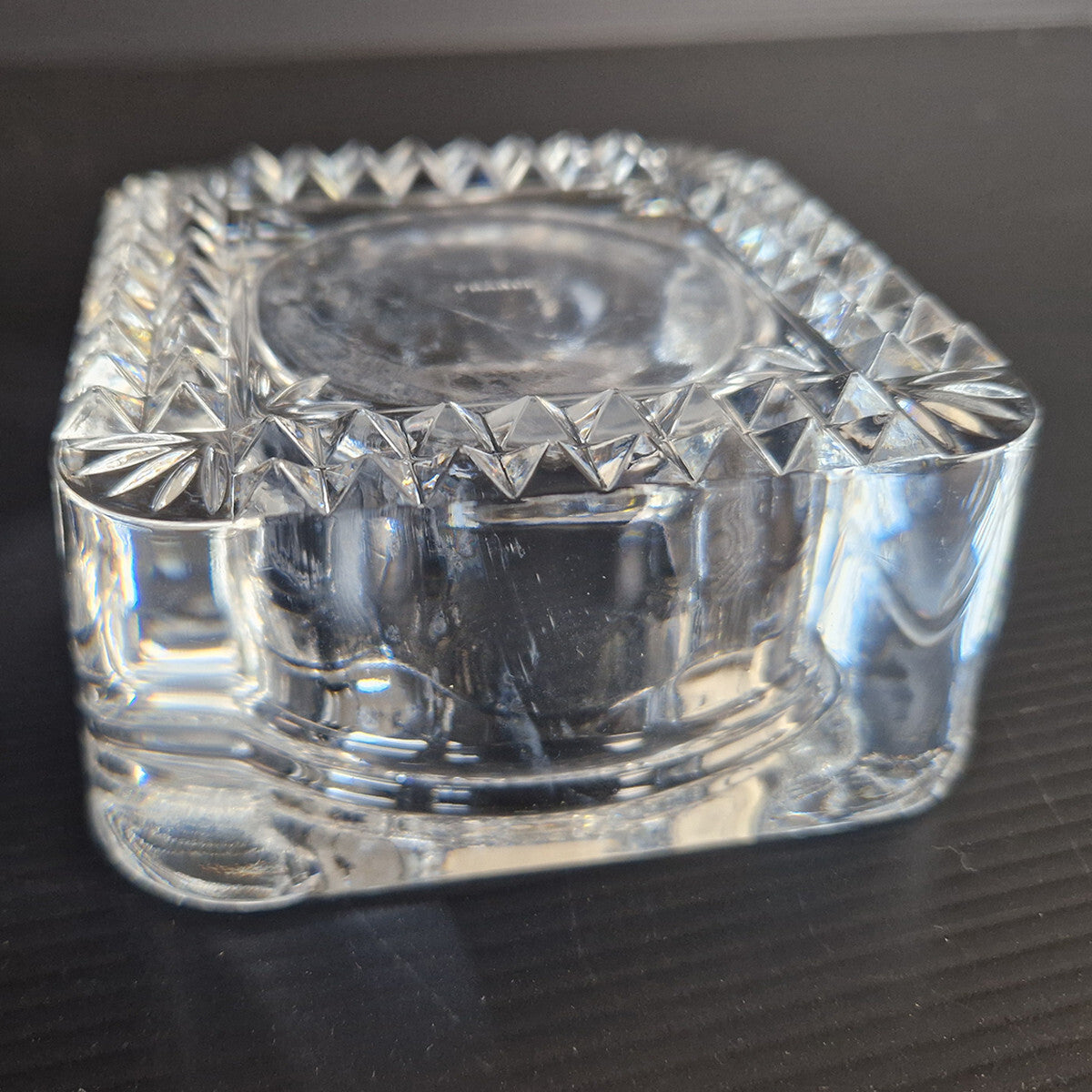 Heavy Cut Crystal Square Cut Out Trinket Dish Tea Light Candle Holder France 4"