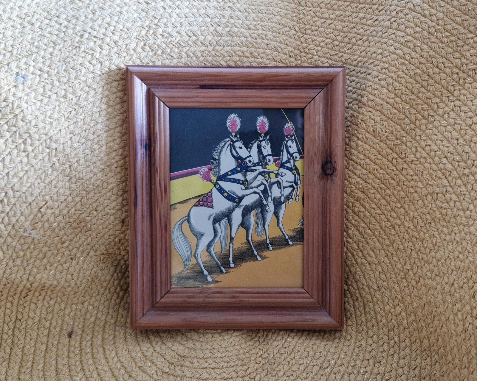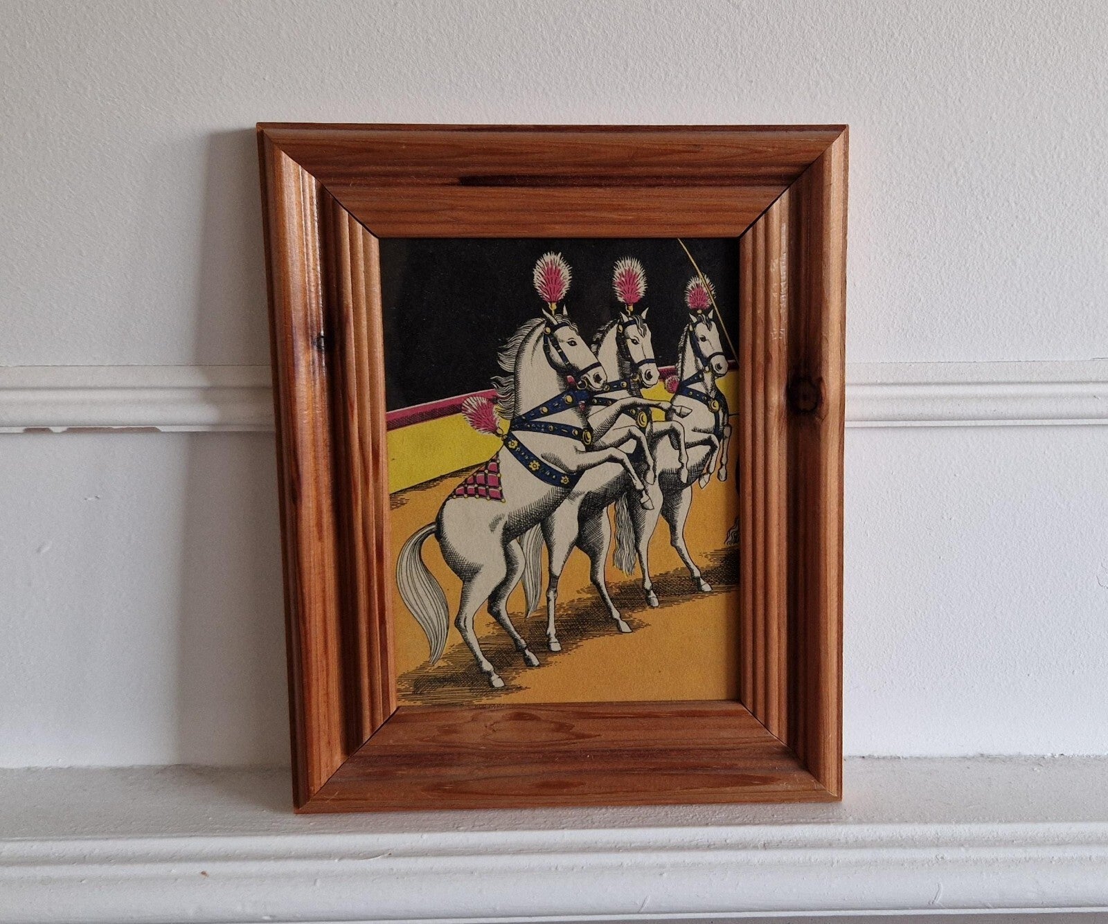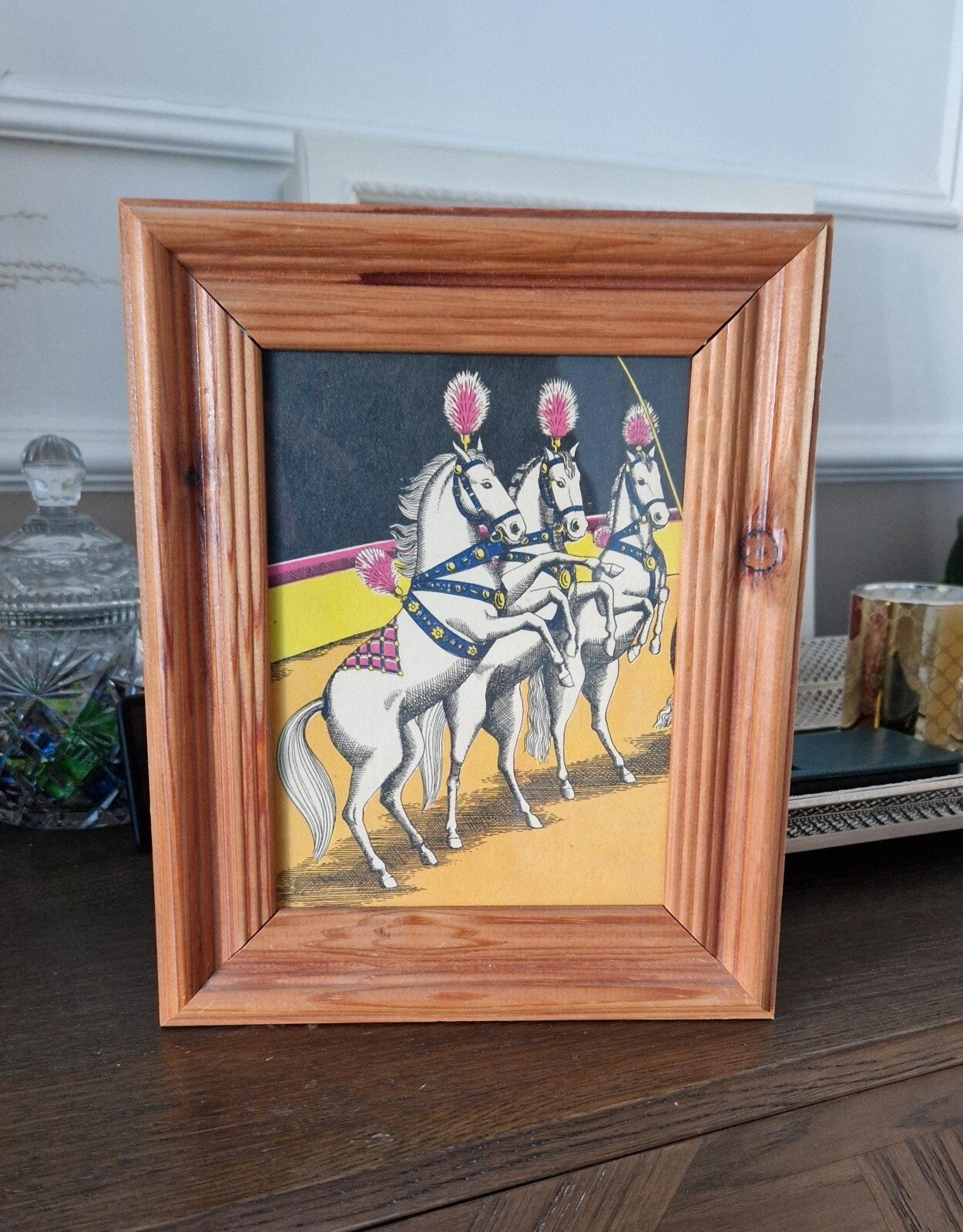 Subject: 3 White Horse Performing At Carnival Circus, Colourful Illustration