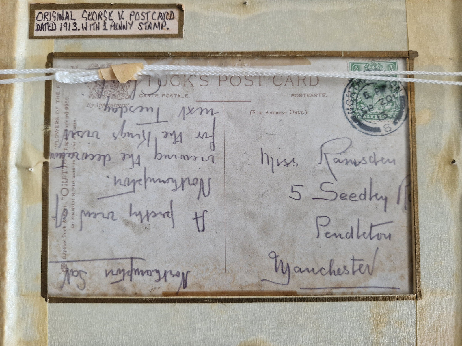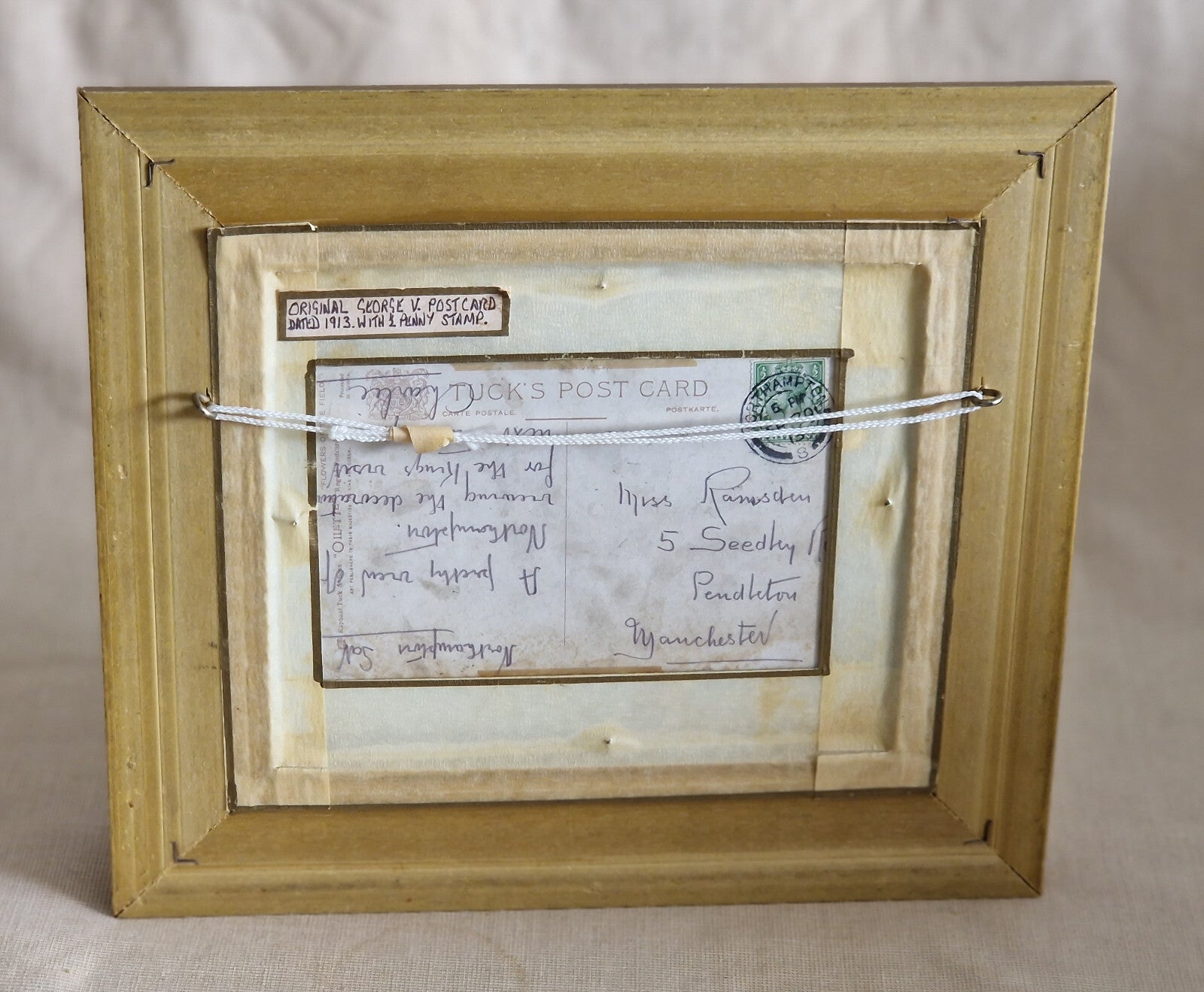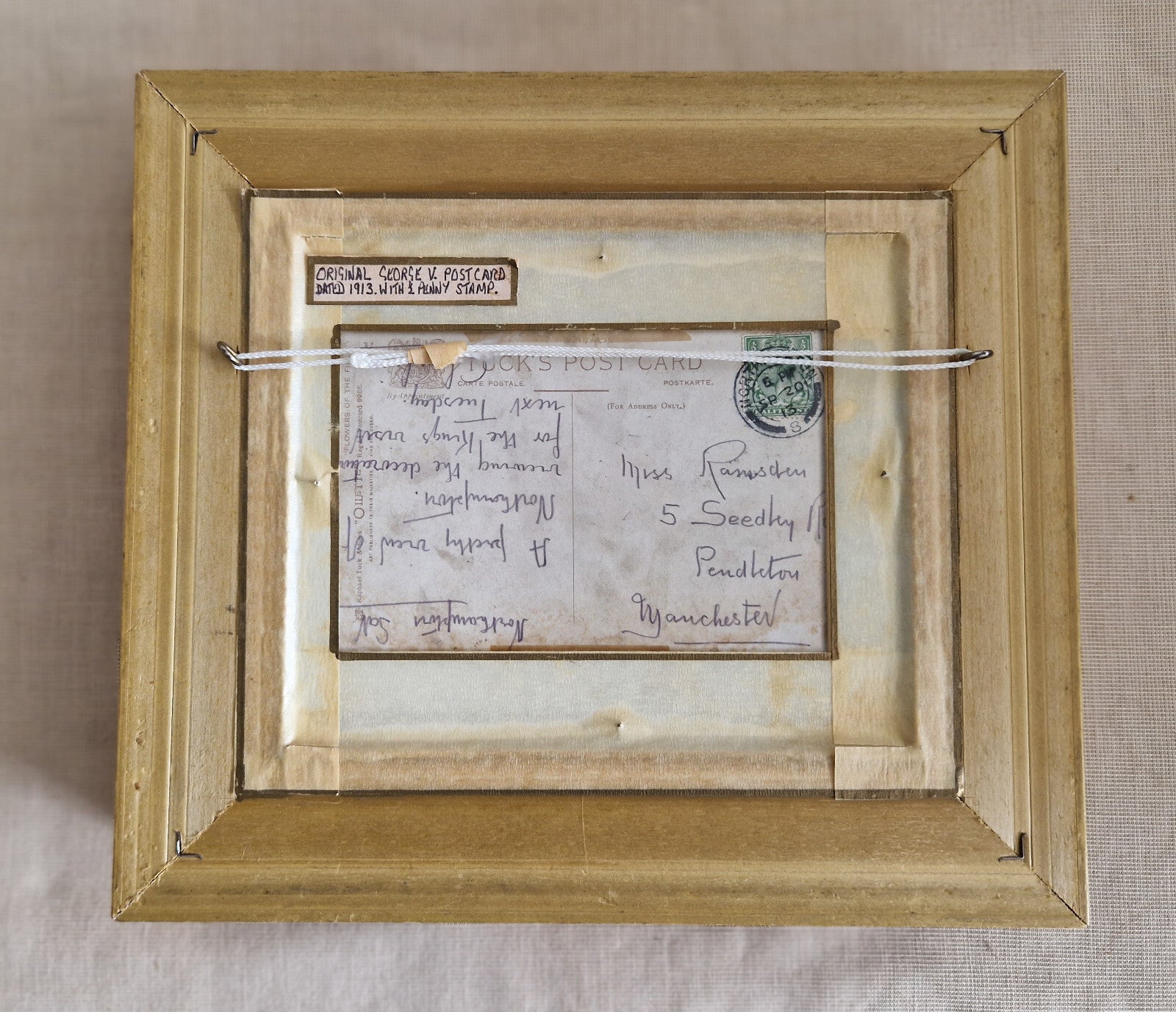 Original George V Postcard In Frame Dated 1913 with 1/2 Penny Stamp