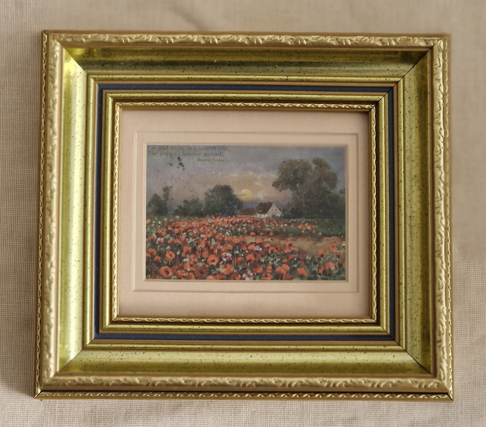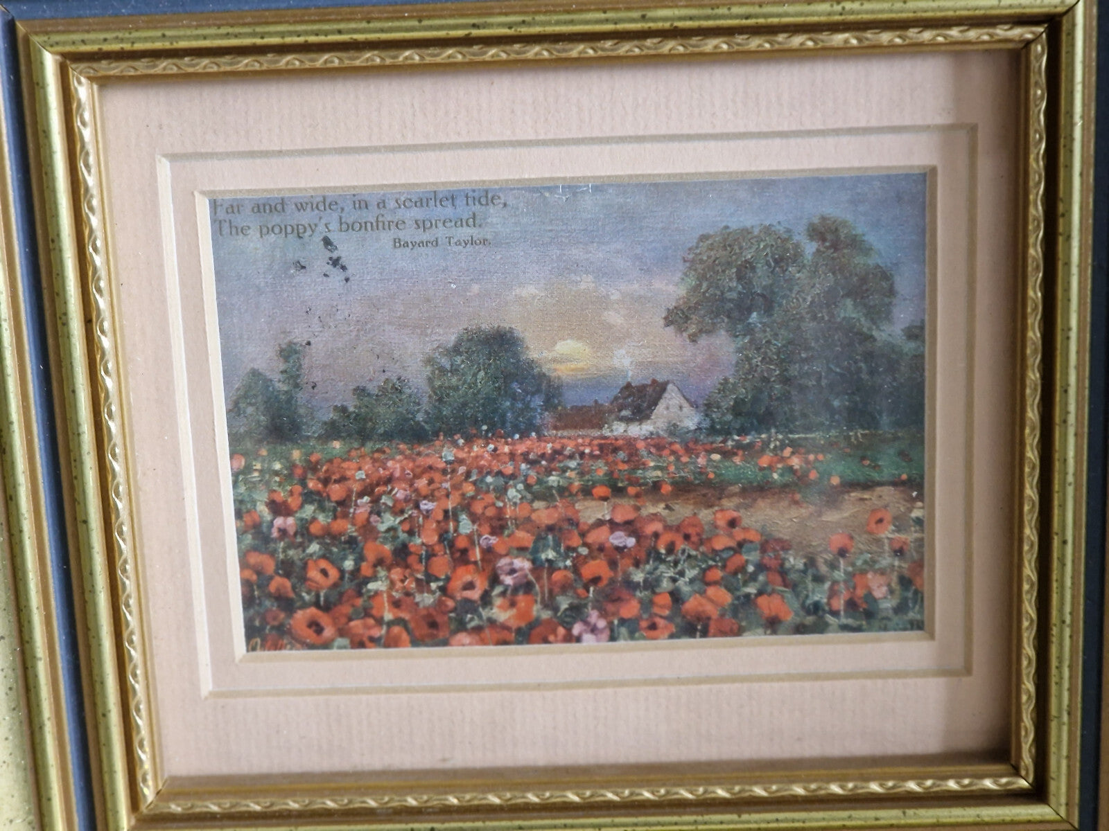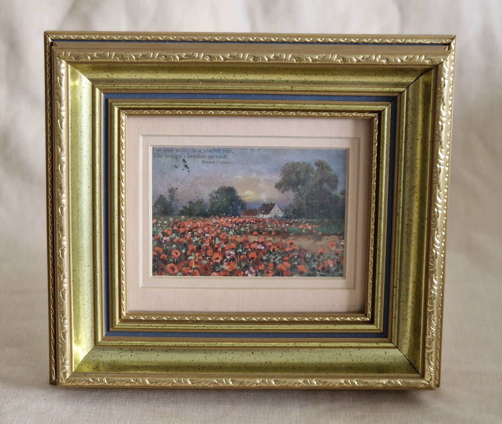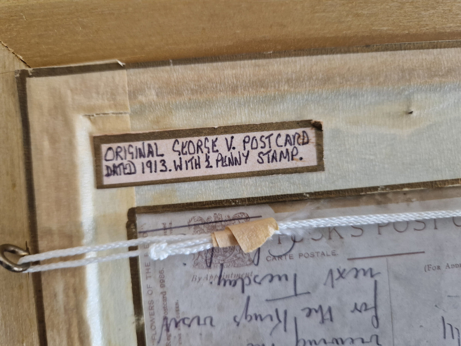 Original George V Postcard In Frame Dated 1913 with 1/2 Penny Stamp Poppy Flower