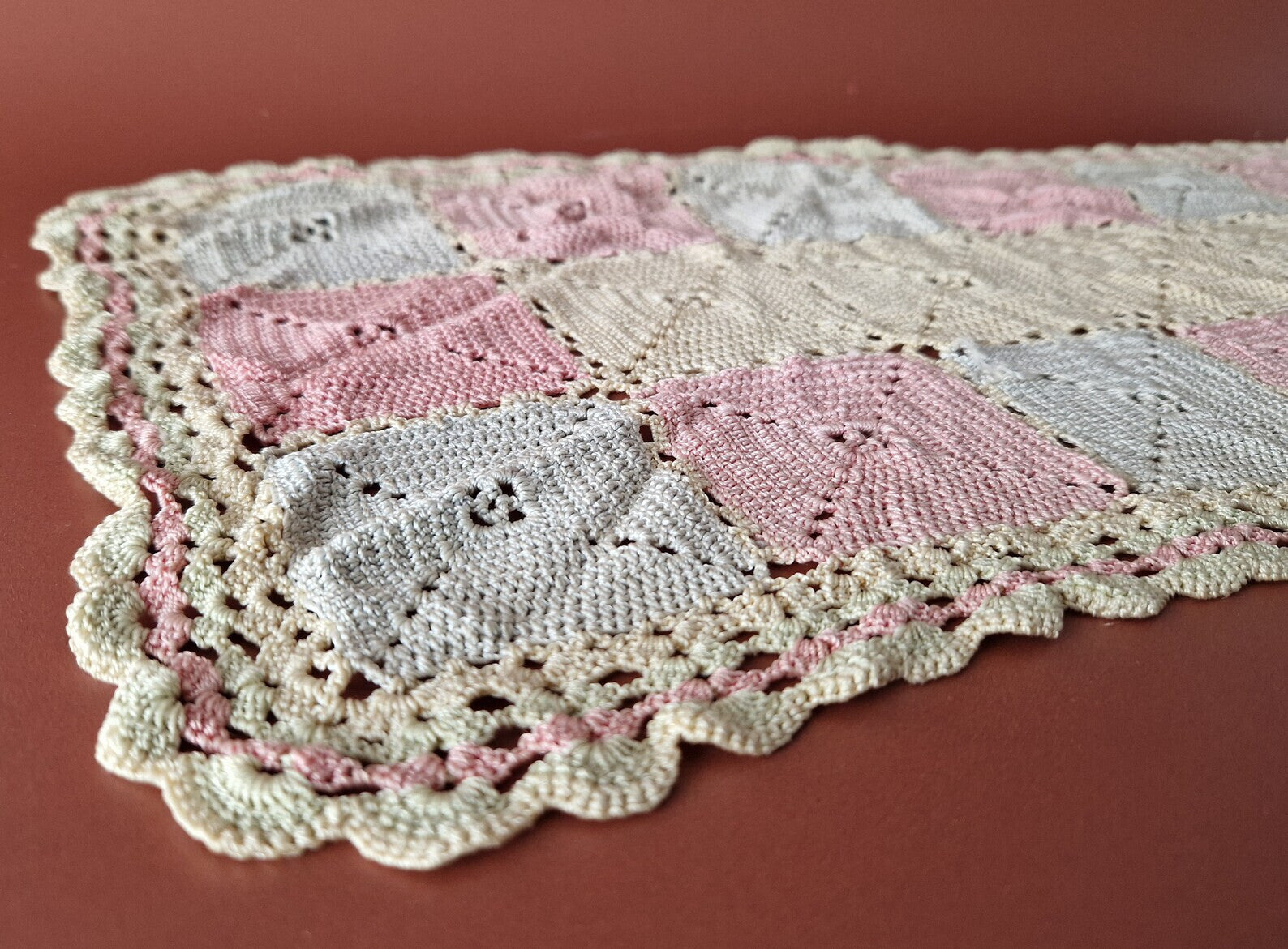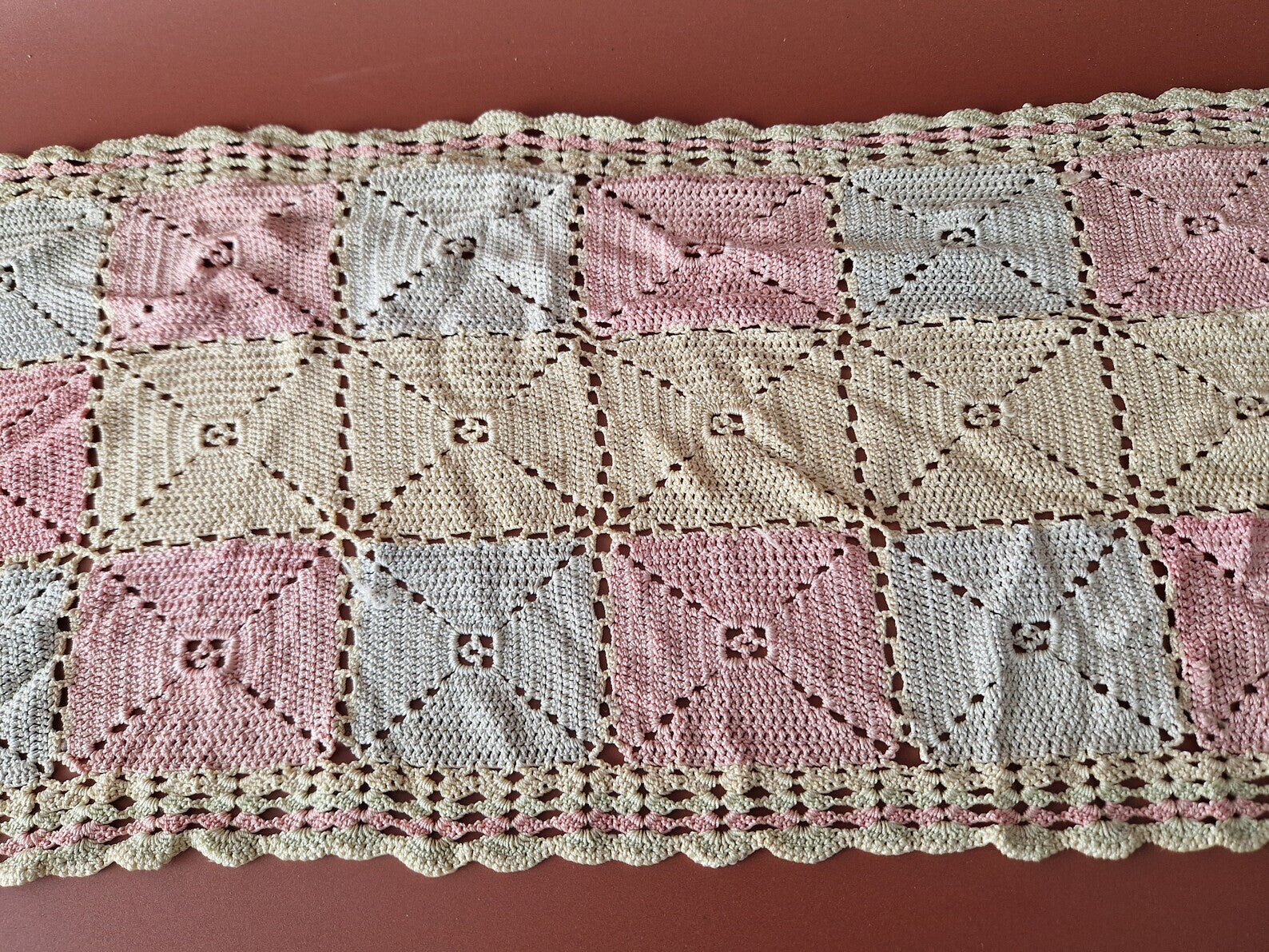 Rare Crochet Doily Ornamental Table Place Mat , Pink Yellow and Grey Colour