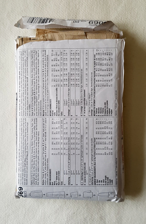 SIMPLICITY 8869 JUNIOR JACKET-PANTS-SKIRT SIZE BB 11/12-15/16
