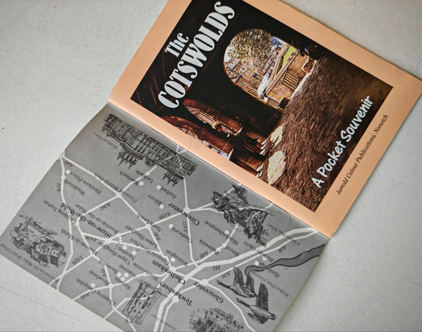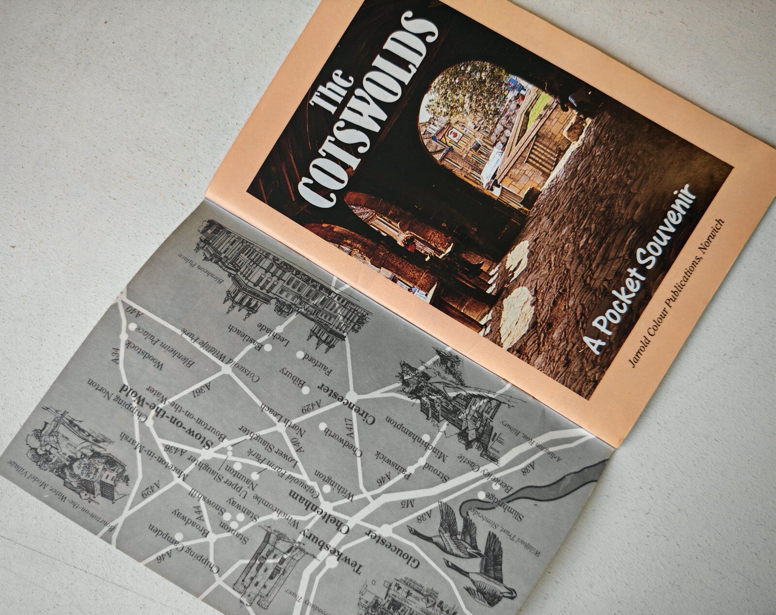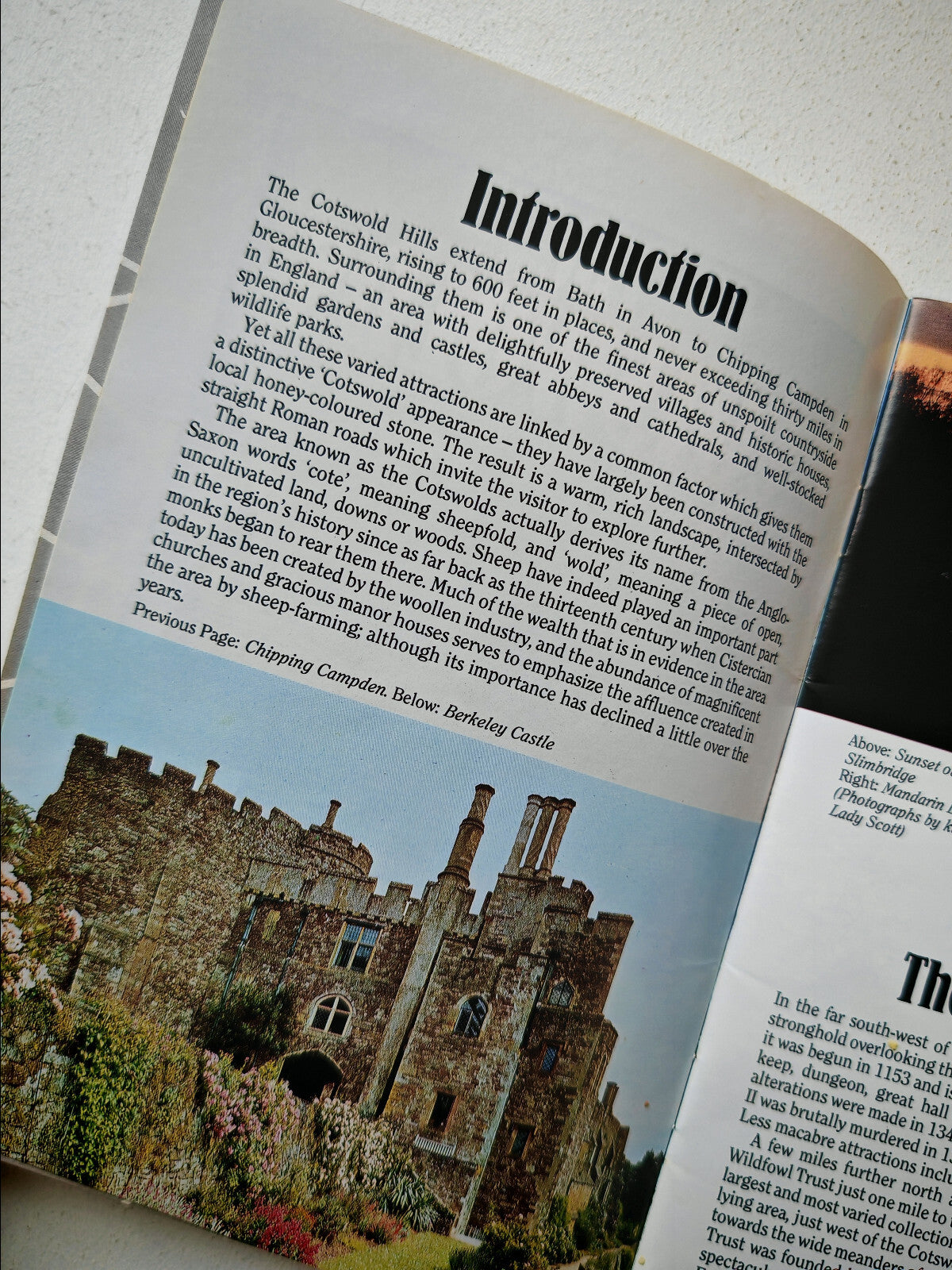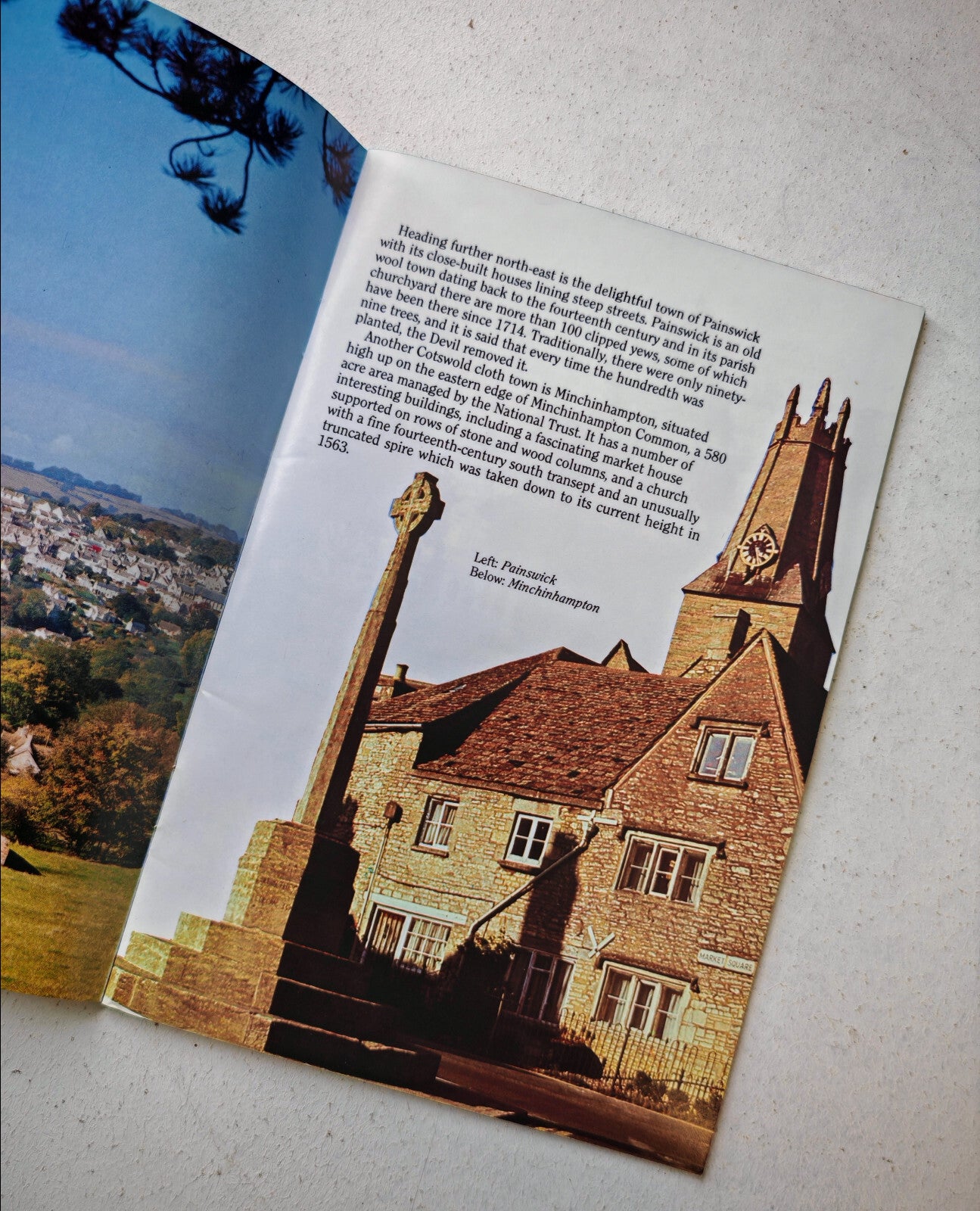 booklet. Published by Jarrold Colour Publications, Norwich, this compact, beautifully illustrated guide features vibrant photographs, detailed descriptions of local landmarks, historical notes, and a lovely introduction to the Cotswold Hills — from Bath in Avon to Chipping Campden.