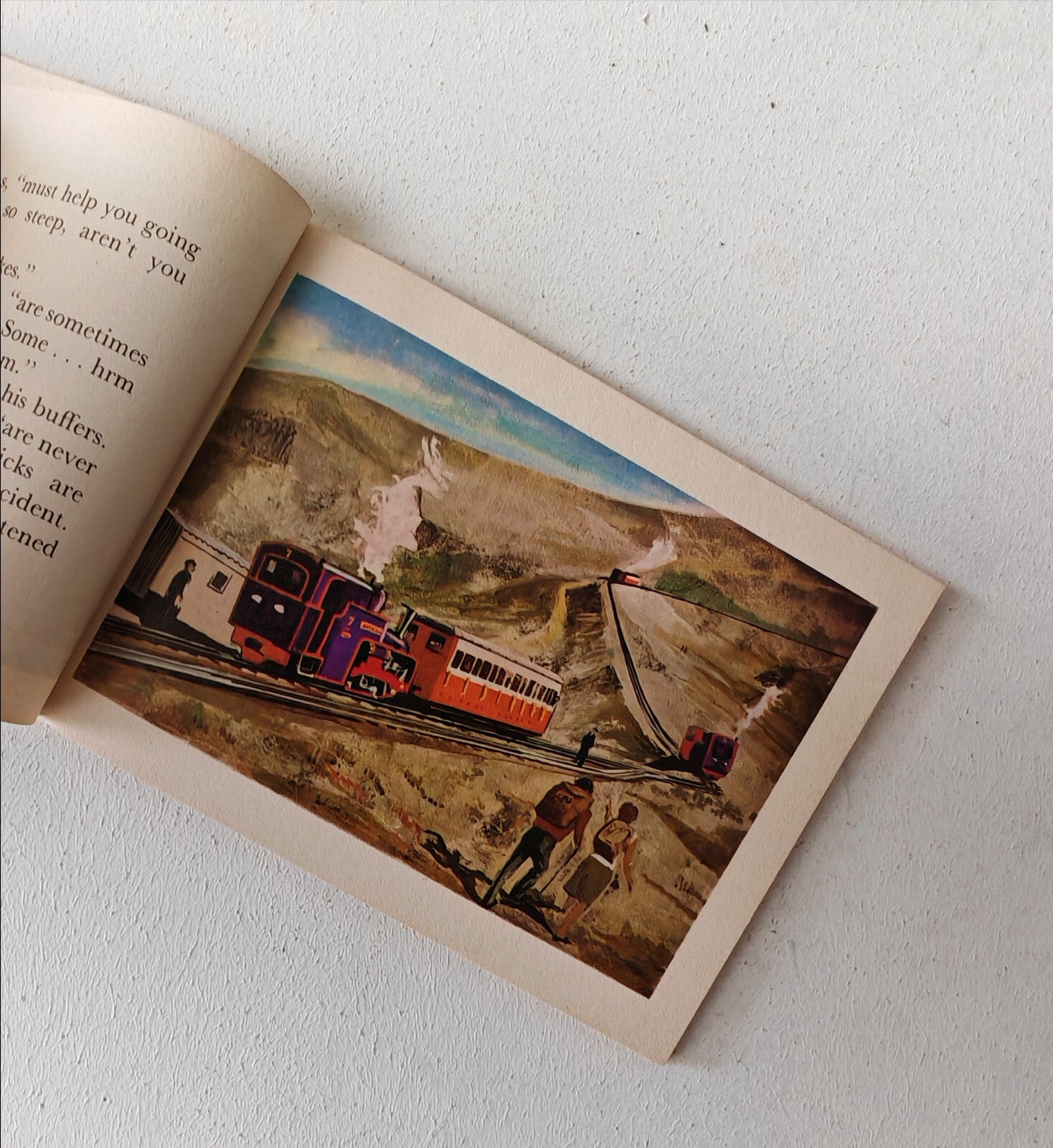 The book is in good condition with some wear on the cover and edges, indicative of its age and past love. The pages inside are clean and vibrant, especially the colorful and detailed illustrations that bring the mountain railway stories to life.