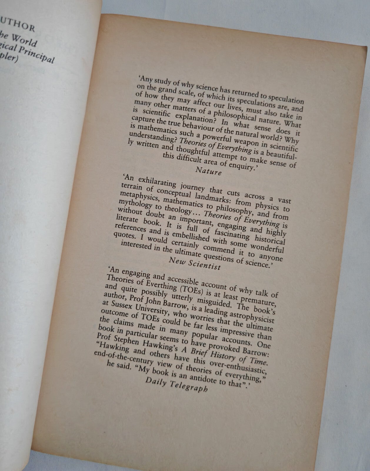 by John D. Barrow, is a compelling exploration of the universe's most profound mysteries. Barrow takes readers on an intellectual journey, delving into the origins of the cosmos and the diverse perspectives of renowned scholars. Blending science and philosophy, this book is perfect for those fascinated by the search for meaning and the fundamental principles governing existence.