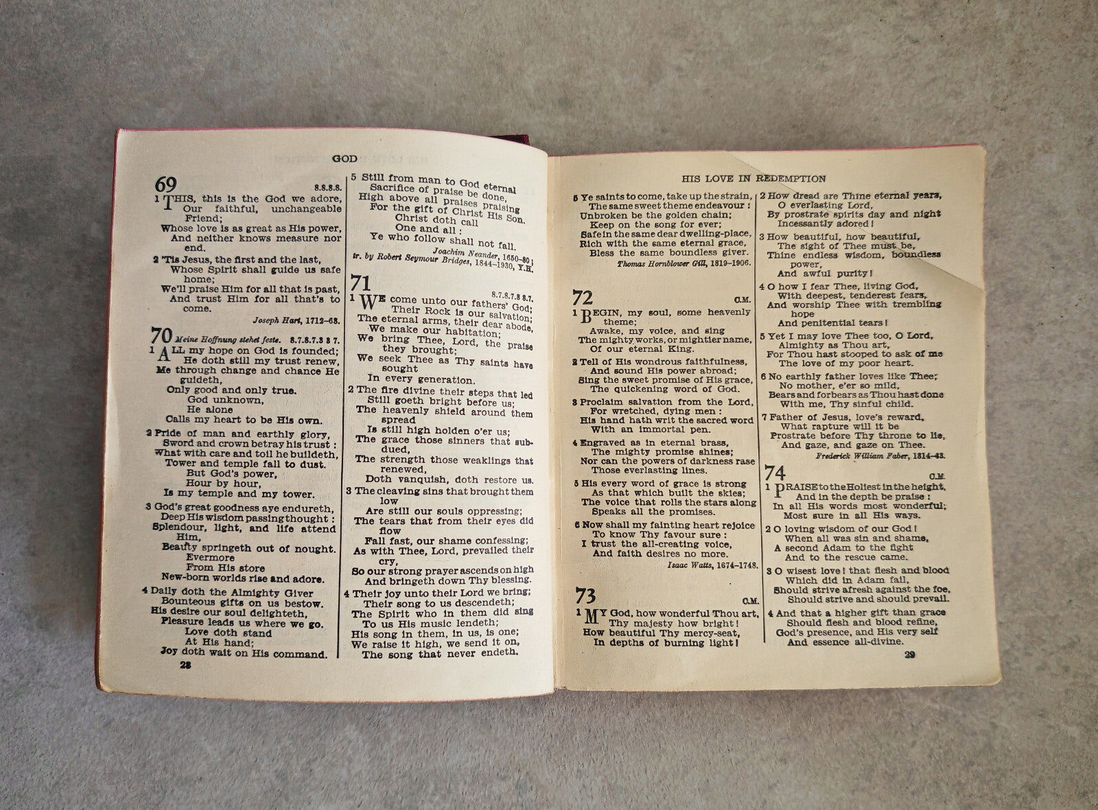 A few minor marks present, consistent with age and usage in a public/church setting.
