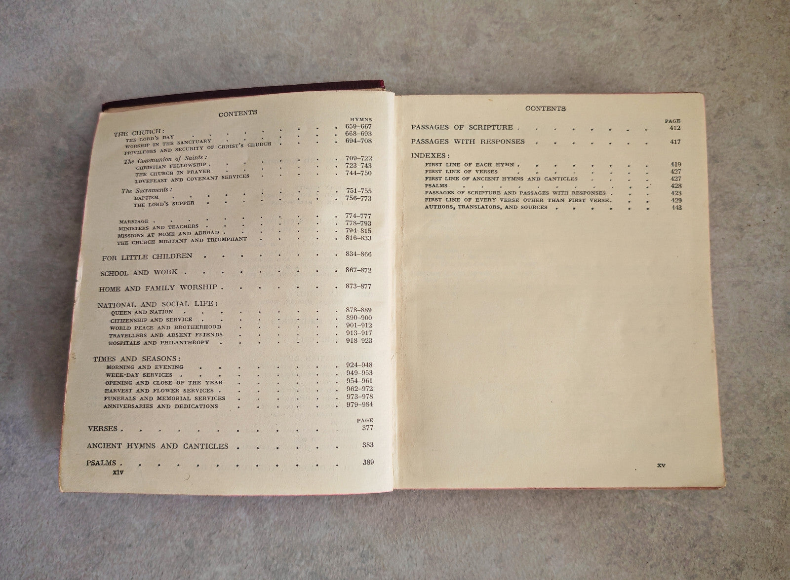 Structured by themes: Worship, Jesus Christ, Holy Spirit, Scripture, The Christian Life, Church Seasons, National and Social Life, etc.