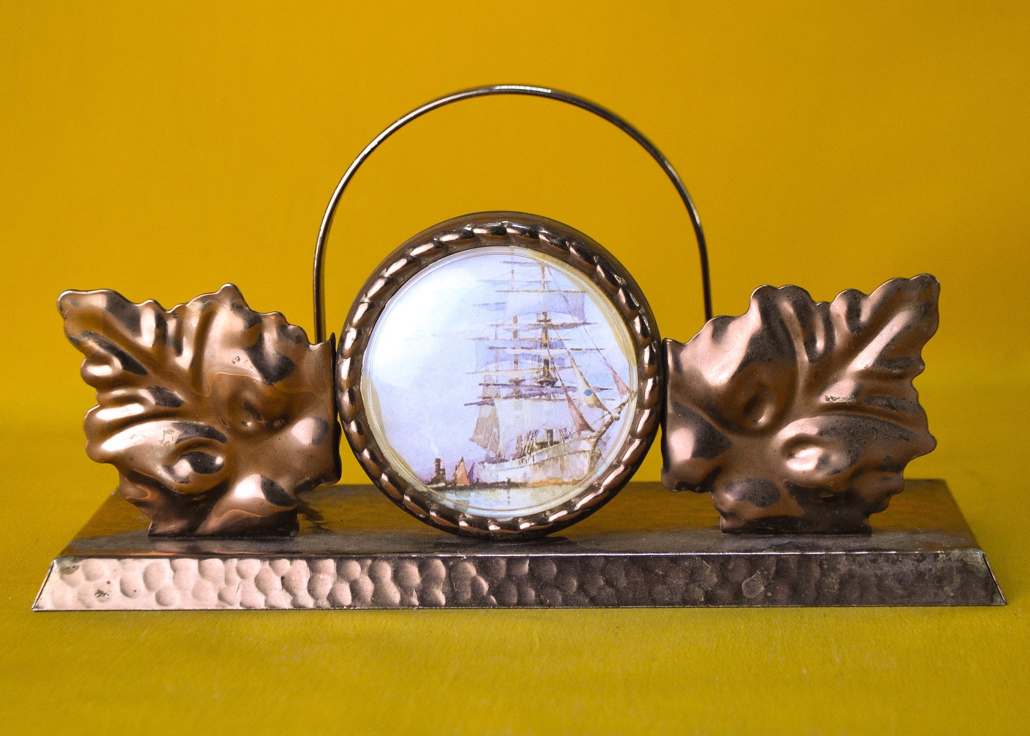 Vintage Copper Letter Rack , Sailing Ship and Leaf Theme