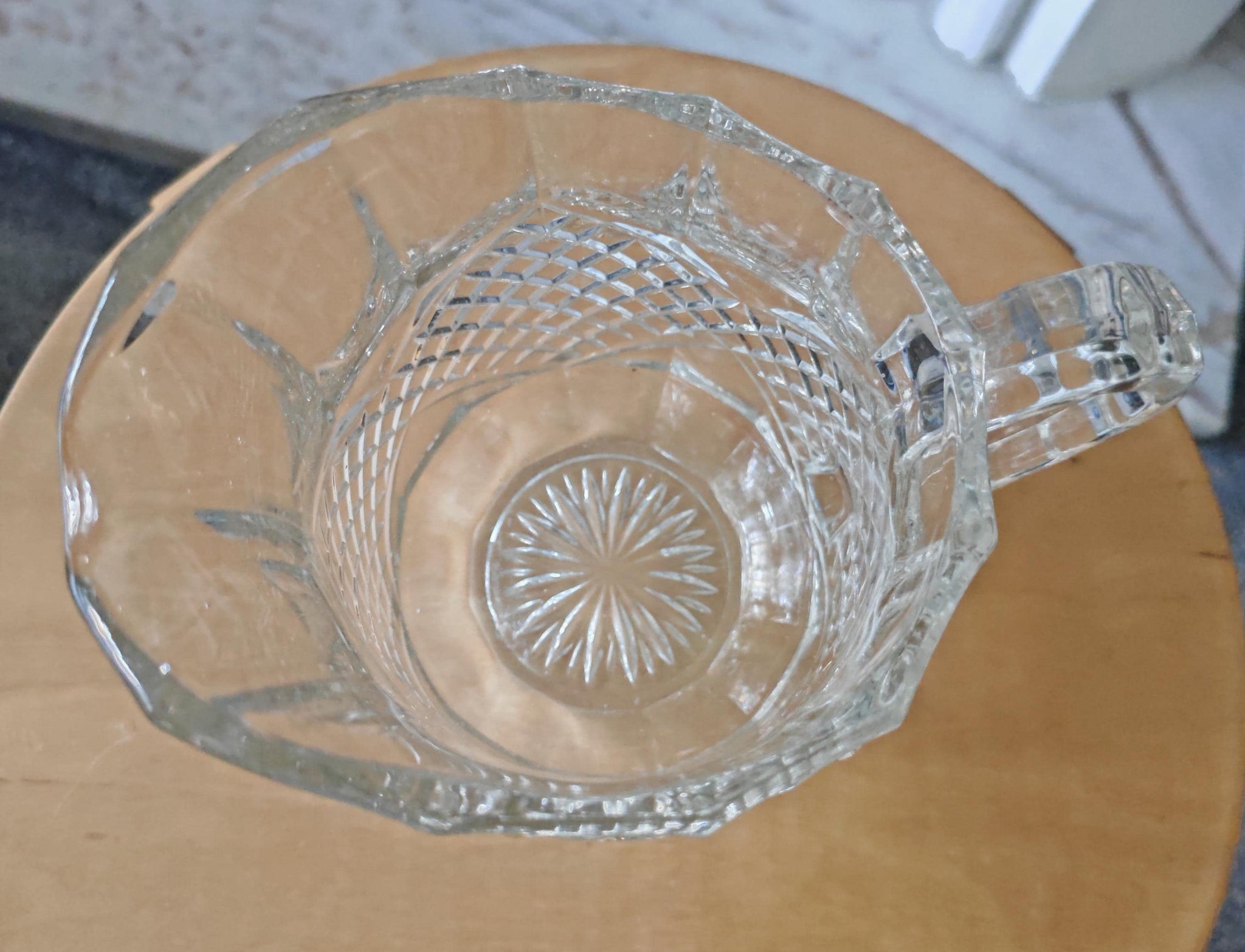 Vintage Cut Glass Jug | Pressed Crystal Water Pitcher | 16cm Tall | Starburst & Crosshatch Design |