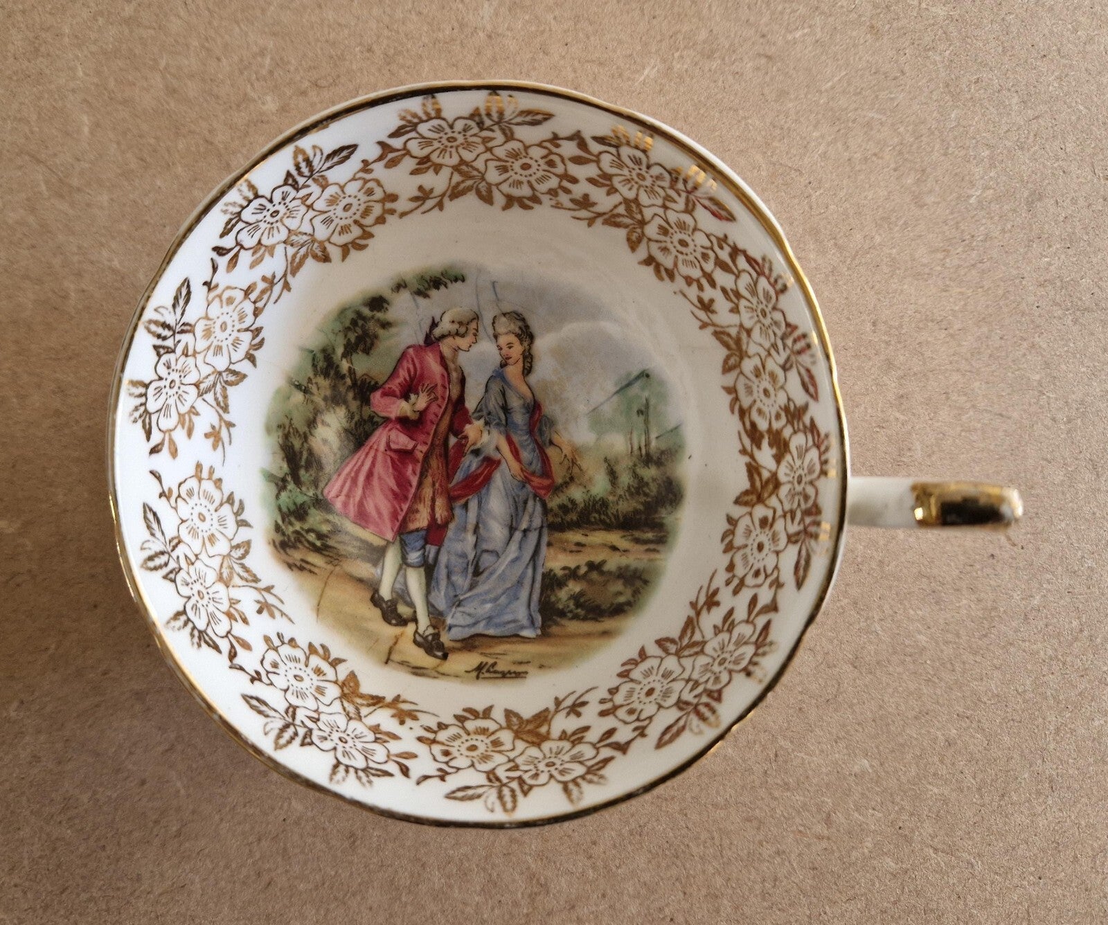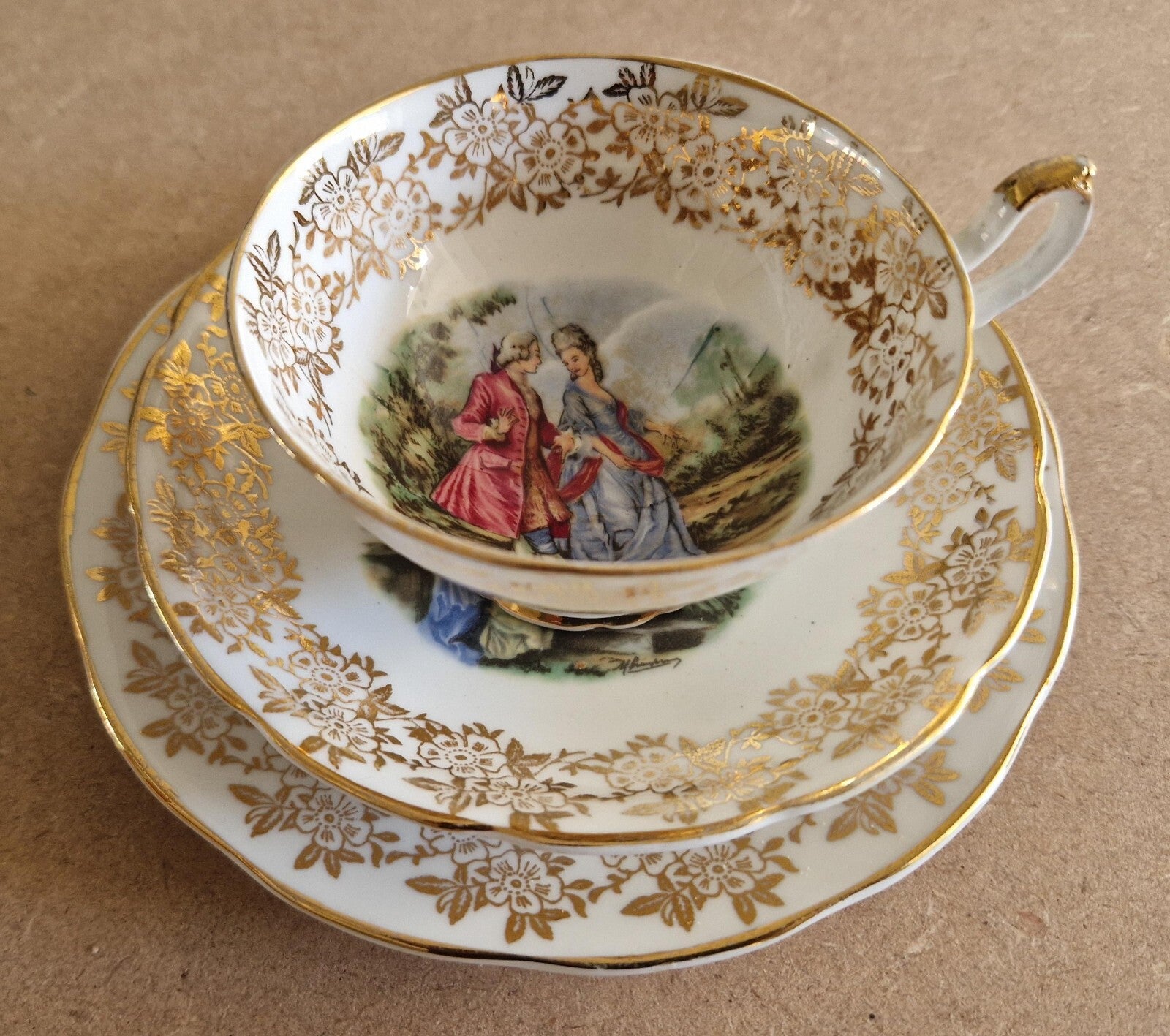 Vintage fine bone china gold pattern teacup , saucer and side plate set