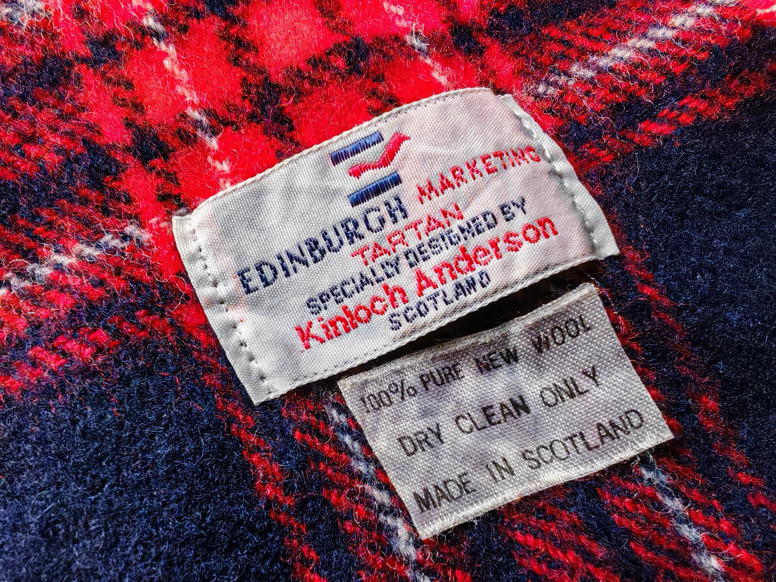 Vintage Tartan Wool Scarf – 141cm Long – Made in Scotland by Kinloch Anderson – 100% Pure Wool