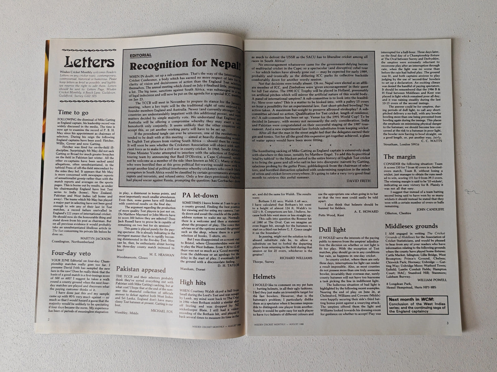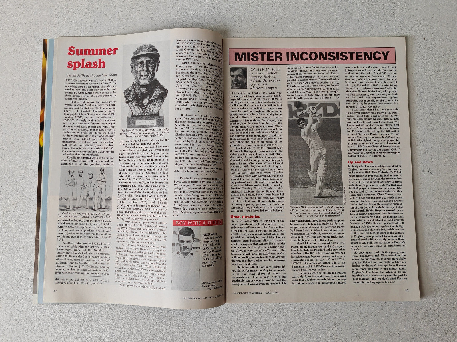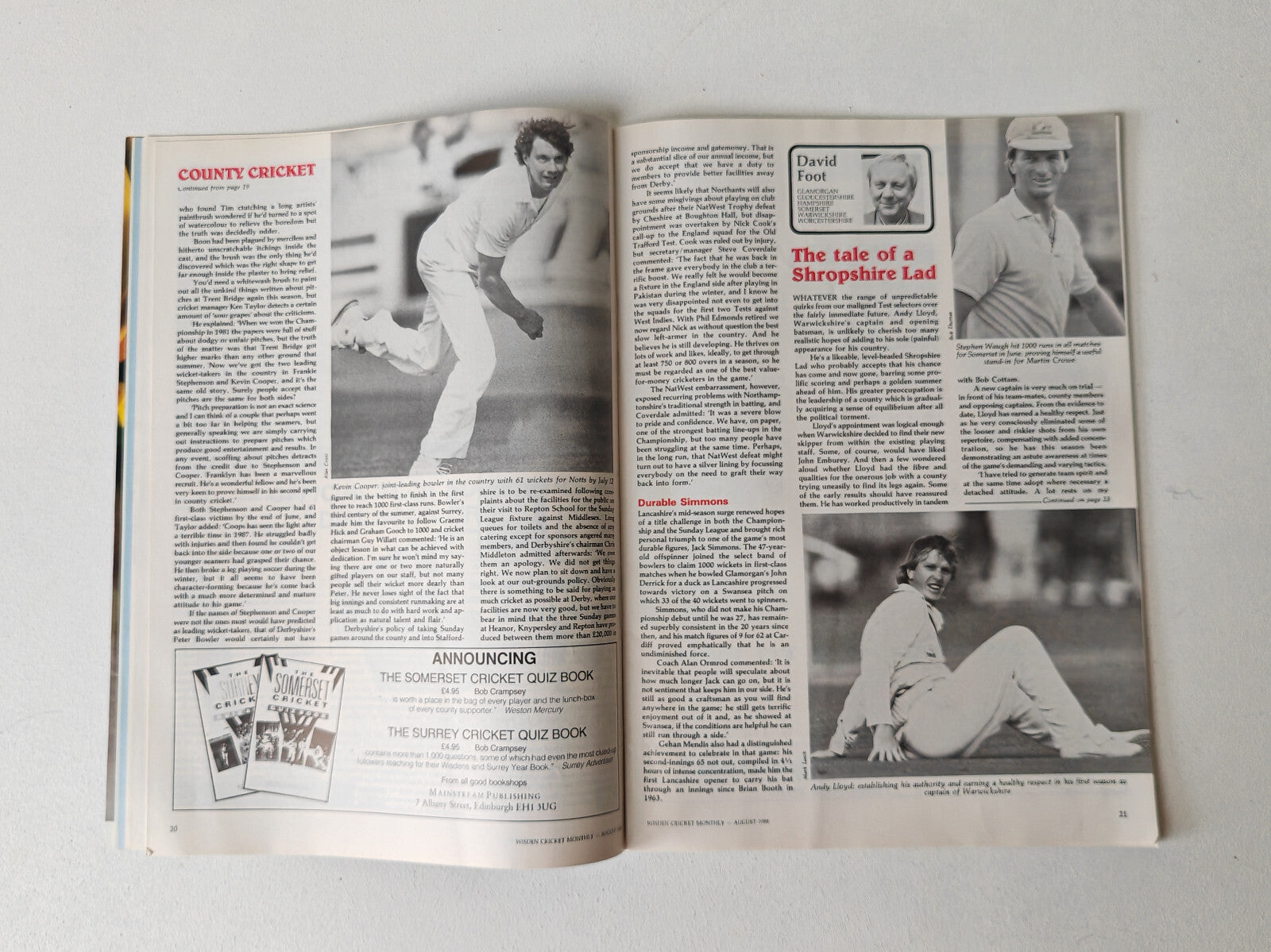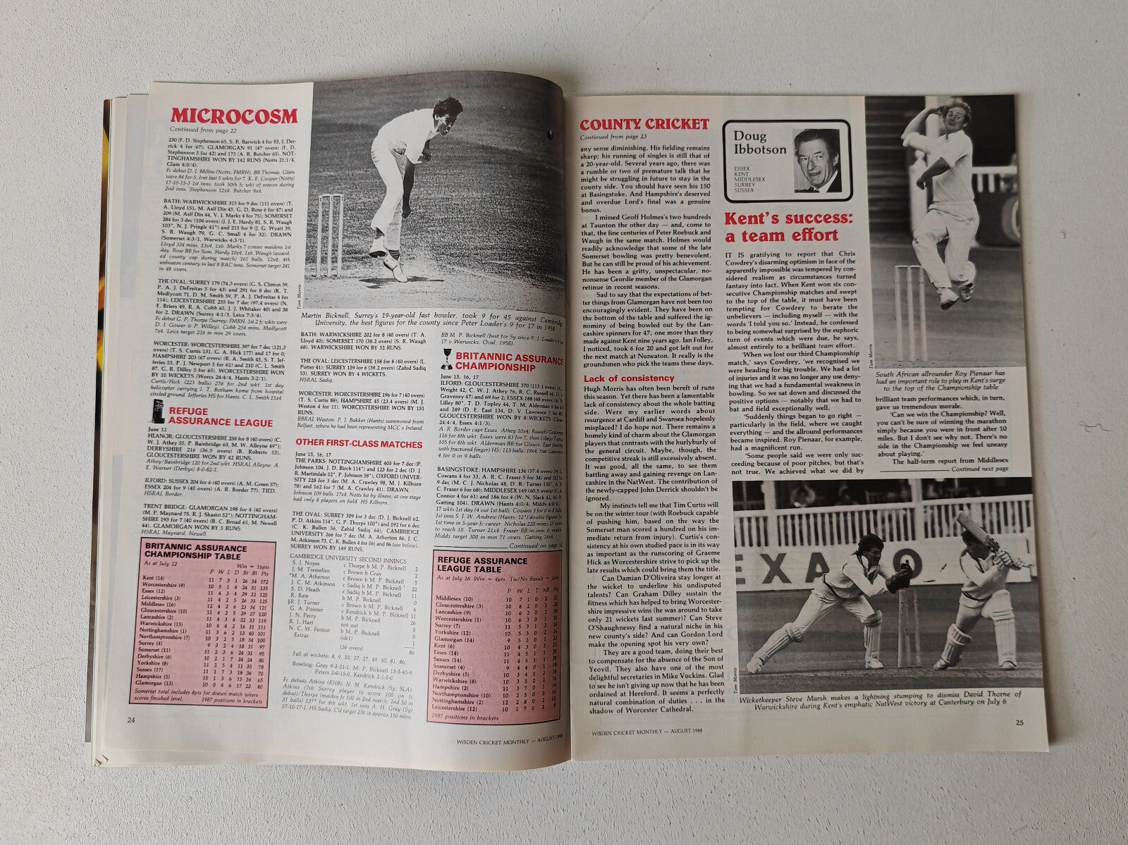 Offered for sale is the August 1988 issue of Wisden Cricket Monthly, featuring the headline story "West Indian Landslide." This issue provides an in-depth look at the cricket scene with articles, analyses, and coverage of the West Indies tour and other key cricketing events.